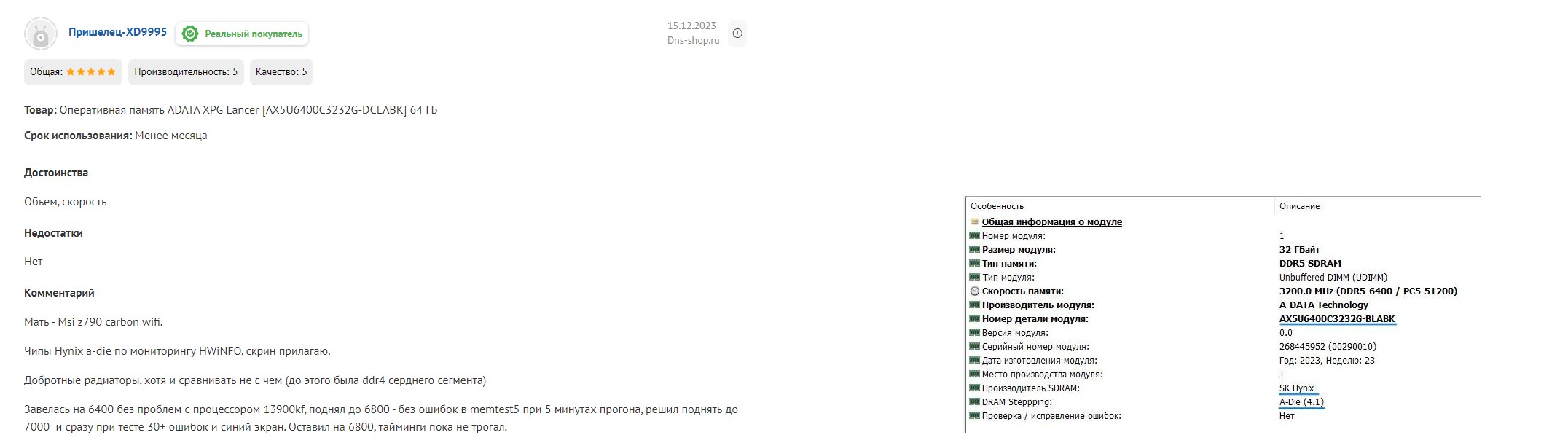 Выбираю между ADATA XPG Lancer [AX5U6400C3232G-DCLABK] 64 ГБ [DDR5, 32 ГБx2 шт, 6400 МГц, 32-39-39 без подсветки ADATA XPG Lancer RGB [AX5U6400C3232G-DCLARBK] 64 ГБ [DDR5, 32 ГБx2 шт, 6400 МГц, 32-39-39 с подсветкой По характеристикам и цене одинаковые. Тут в теме писали что они M-DIE, а в комментариях в DNS к версии без подсветки писали что A-DIE и прикладывали пруф