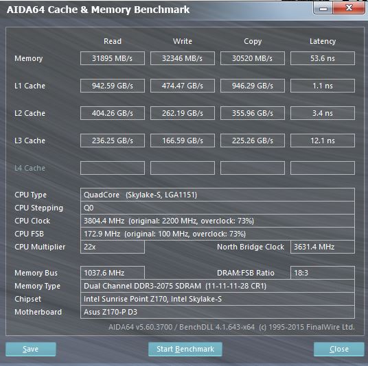 1 планка ddr4 2133 + i3 6100 какие должны быть цифры чтения записи? у меня 16000 это нормально или мало? проверял с помощью aida64 5.80 cache & memory benchmark