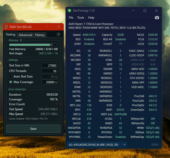 При VDDP=1.0 Прошёл Karhu 10k. Потом поменял tRDRDscl, tWRWRscl с 6 на 5 и снова запустил тест... и вылет на 195%... Какой напруги может не хватать что бы взять tRDRDscl, tWRWRscl=5? Может как раз VDDP не хватает?