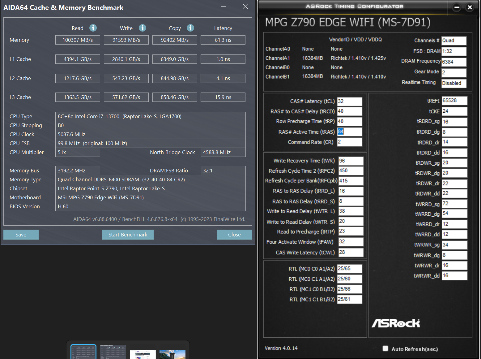Приветствую! нормальные ли показатели памяти для 6400 по XMP из коробки ? изменил только tREFI c 6250 до 65528 и tRFC2 c 510 до 450 больше нечего не трогал, почитал немного ветку вроде на таких таймингах и частоте можно уменьшить напряжение до 1.36 ?