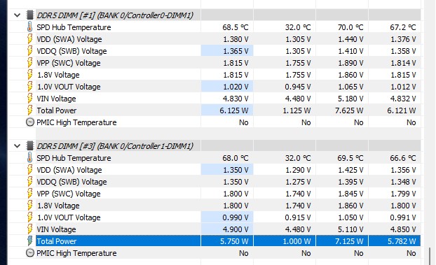 Народ, а вообще какие у кого температуры оперативки DDR5 в разгоне, не поделитесь?