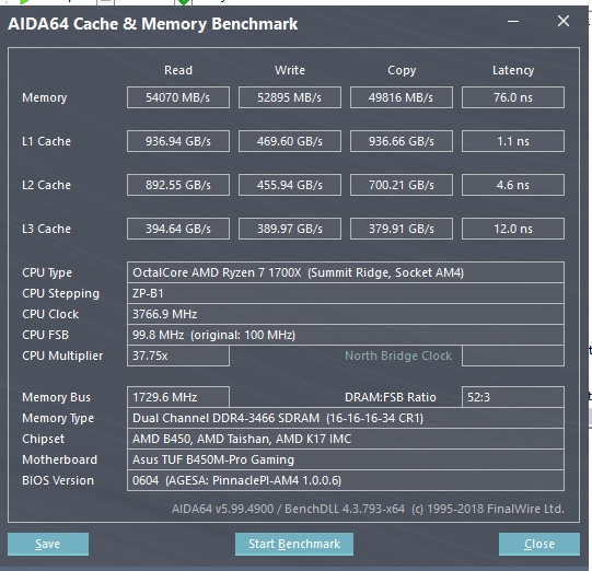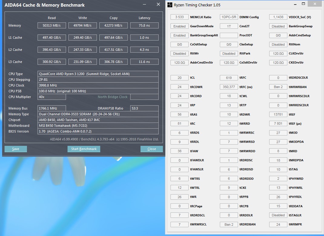 Какая писал ранее, имею в распоряжении память из Китая. Будем считать, что на неизвестных чипах, т.к. сказать точно что там конкретно не представляется возможным. На 3533 выставило тайминги 20-25-25-57, немного уменьшил вручную до 20-24-24-56. DDR 1.39v SOC 1.12v. Тест проходит без ошибок. Что тут можно "подкрутить"\оптимизировать? Для райзена задержка в районе 70-ти - это вроде как нормальный результат, или я ошибаюсь? *На 3600 запускается, но в тесте изредка проскакивает одна ошибка, даже сразу решил, что стабильно все работает. 3666 и 3733 - стартует, но насыпает ошибок много.