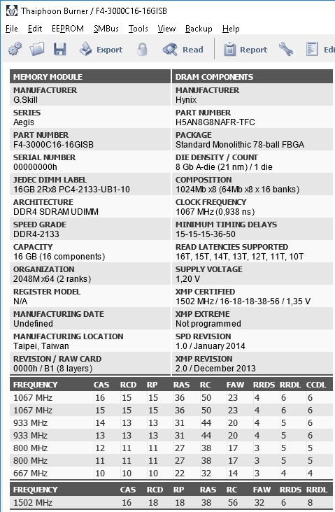 [img]Ссылка на скрин[/img] Для сбора статистики по установленным чипам памяти просьба прикладывать скрины программы Taiphoon Burner и указывать напряжения на DIMM, IO и SA![/color]