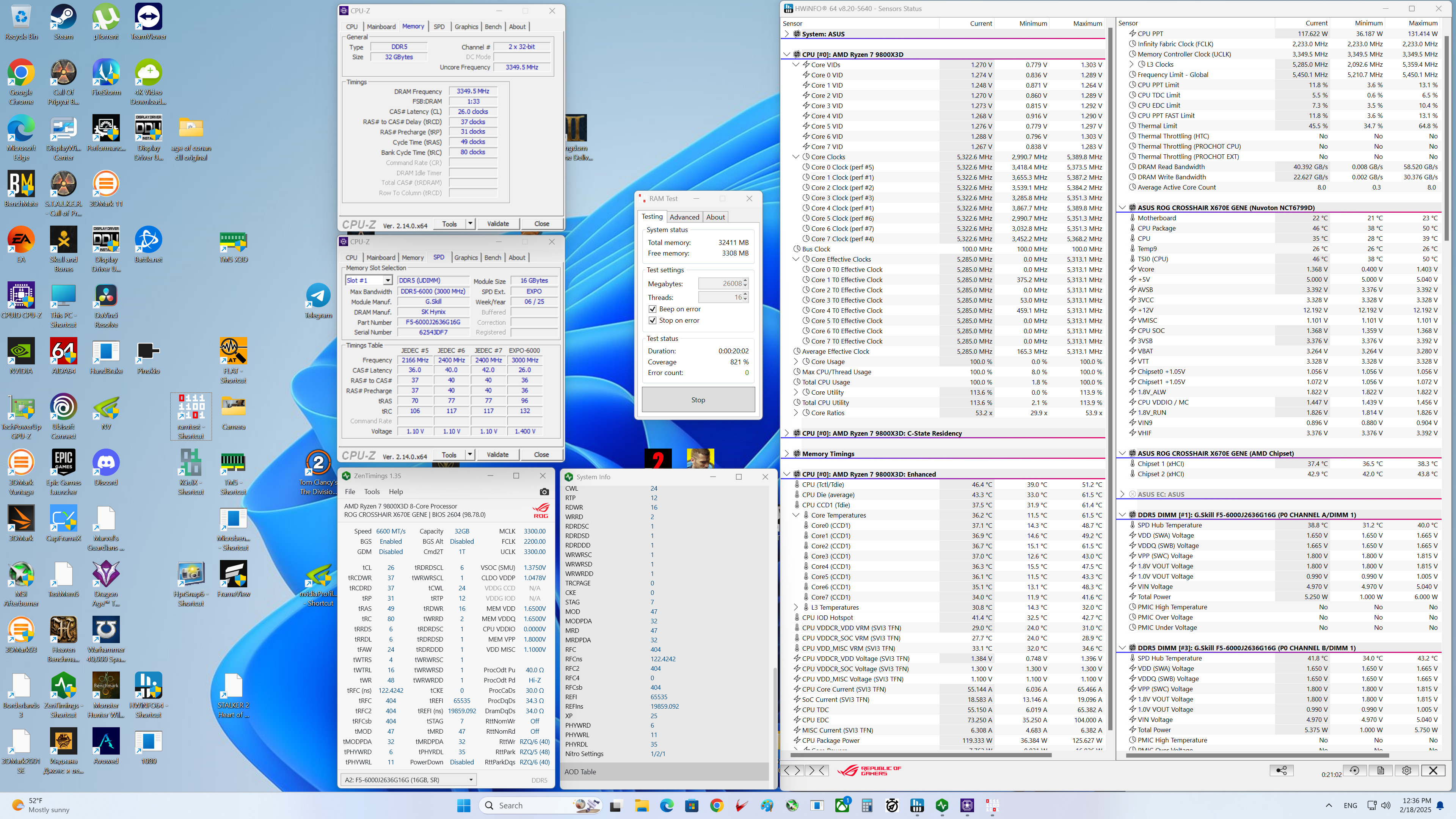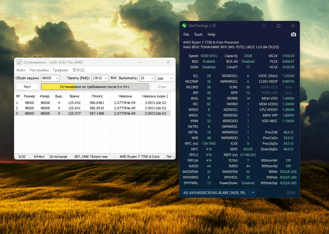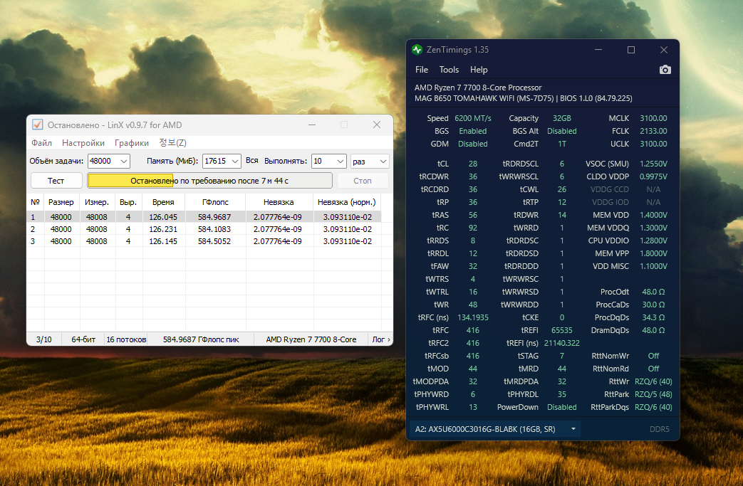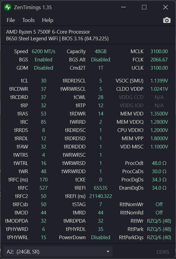 Частоты 6000-6200 ставят как правило чтобы снизить напряжение vsoc и на памяти. У вас vsoc 1.25 и vdd 1.4. То есть стандартные для 6400. Не лучше ли настраивать 6400 с такими напряжениями ? 6000-6200 не настроить быстрее чем 6400.