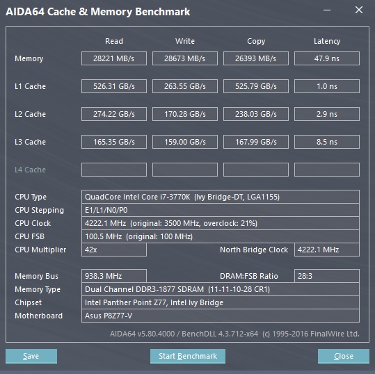 XMP убрал, поставил Авто, дальше поставил частоту 2000Mhz и пробовал 11-11-11-28 1T, 11-12-11-28 1T, поднимал напругу до 1.6v и 1.65v, даже не стартует. В общем стабильно работает только на 1866 и 11-11-10-28 1T при 1.5v, причем если попробовать снизить хоть на единичку любой из таймингов, сразу куча ошибок и поднятие напруги не помогает вообще никак. В общем печально как-то. Что делать... может DIGI+ поковырять или планки местами поменять или оставить всё как есть... я хз, то ли планка неудачная попалась, то ли с Savage-ом совсем не дружит. ЗЫ ХЗ почему показывает 1877 и 4222.1 на проце, в биосе стоит 1866 и 4200 соответственно.