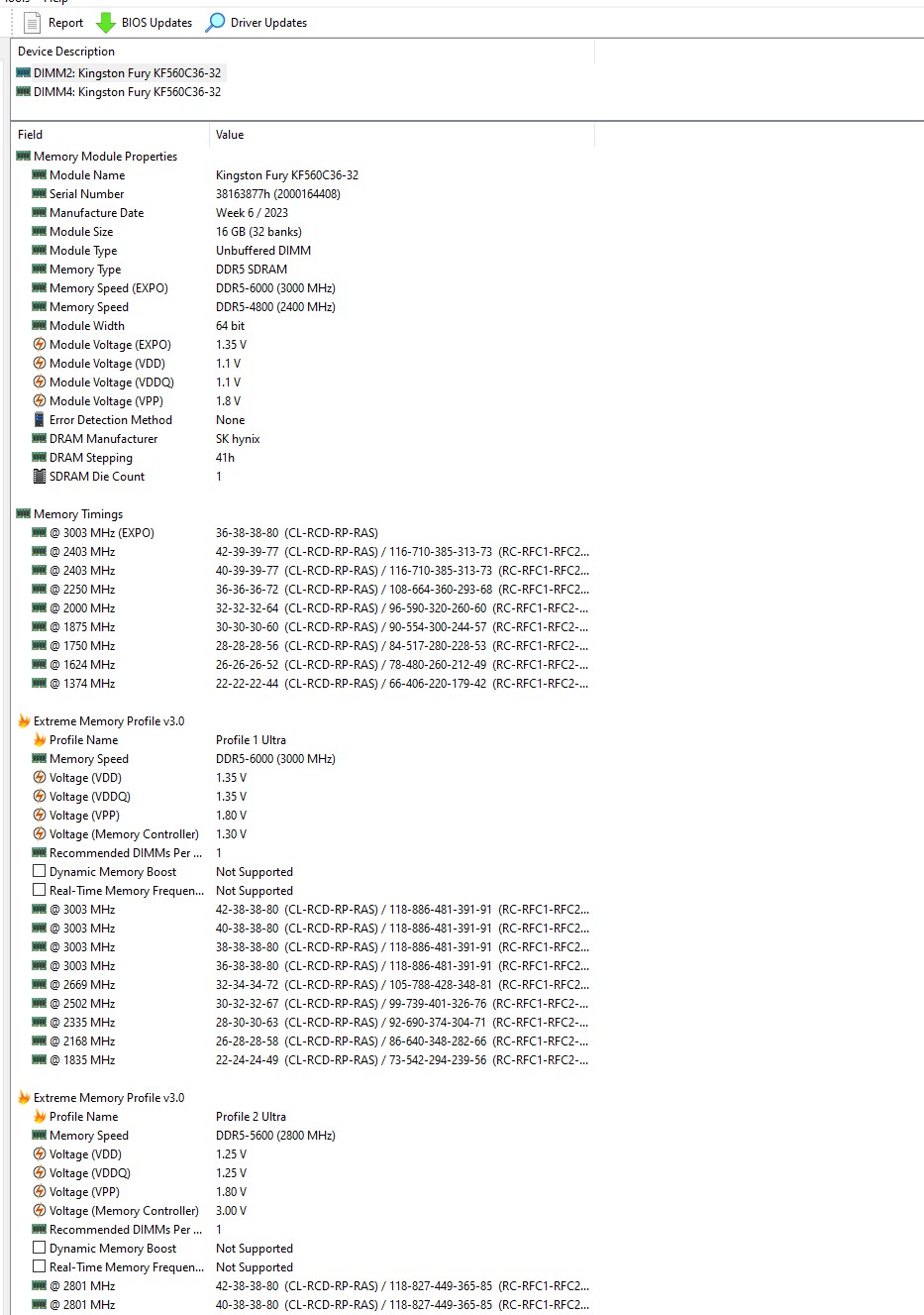 У меня комплект Gskill 48 ГБ 6800 34-46-46-108. Плата Carbon z690 или кривые руки не держат 6800 и 6666. Сделал разгон 6400 30-38-38-86, tRFC2 624, tREFI 52224, без вторичек. Минимальное напряжение памяти, которое удалось нащупать - 1.47. На 1.46 ошибки, повышение tRFC2 не помогает. VDDQ 1.38. В тестах без обдува (в корпусе 4 вертушки на вдув, 420 радиатор и 1 вертушка на выдув) температура до 58 градусов поднимается. В общем что-то не заметил я, что эти планки можно гнать на "приятных" напряжениях.