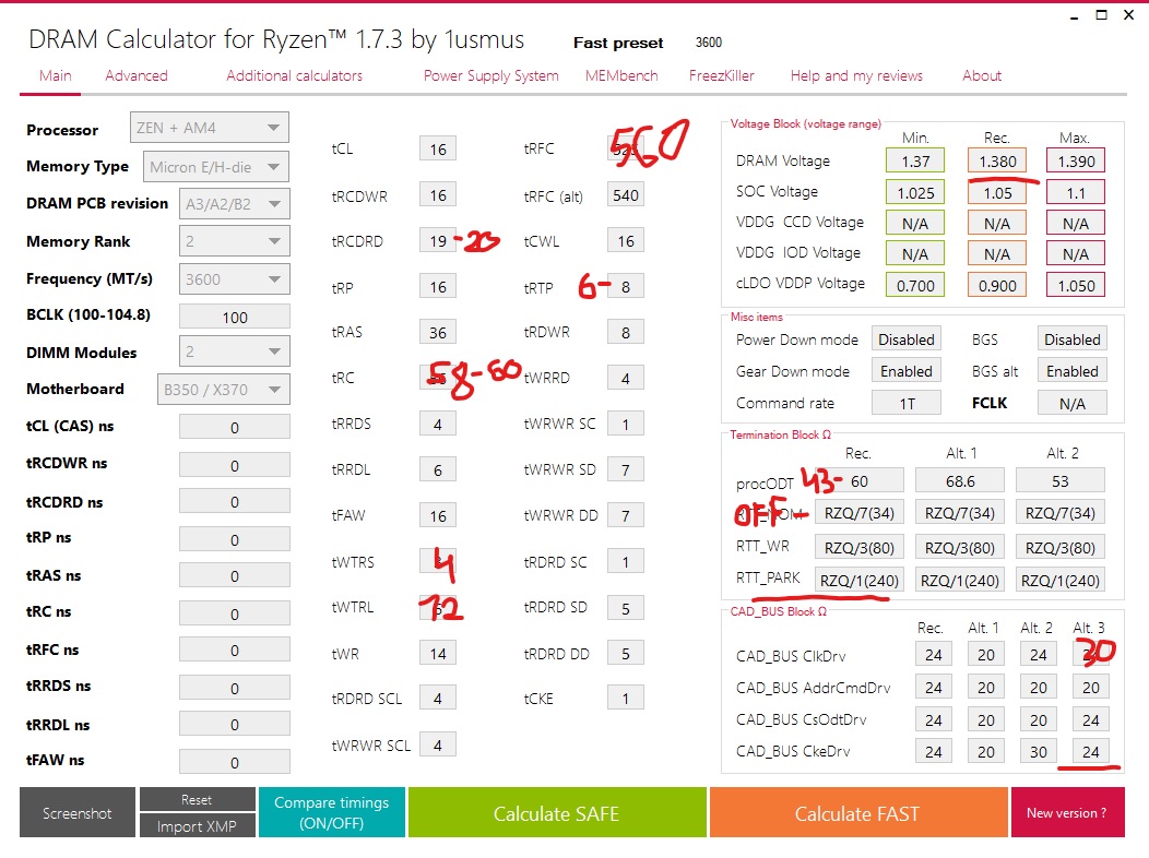 Ну что делать: даже реферальные значения в DRAM Calculator положительных результатов не дают. Кое-как нашел стабильные значения для частоты в 3466ГГц (в предыдущем посте). А дальше не заводится. Указанные в калькуляторе значения даже близко не работают.