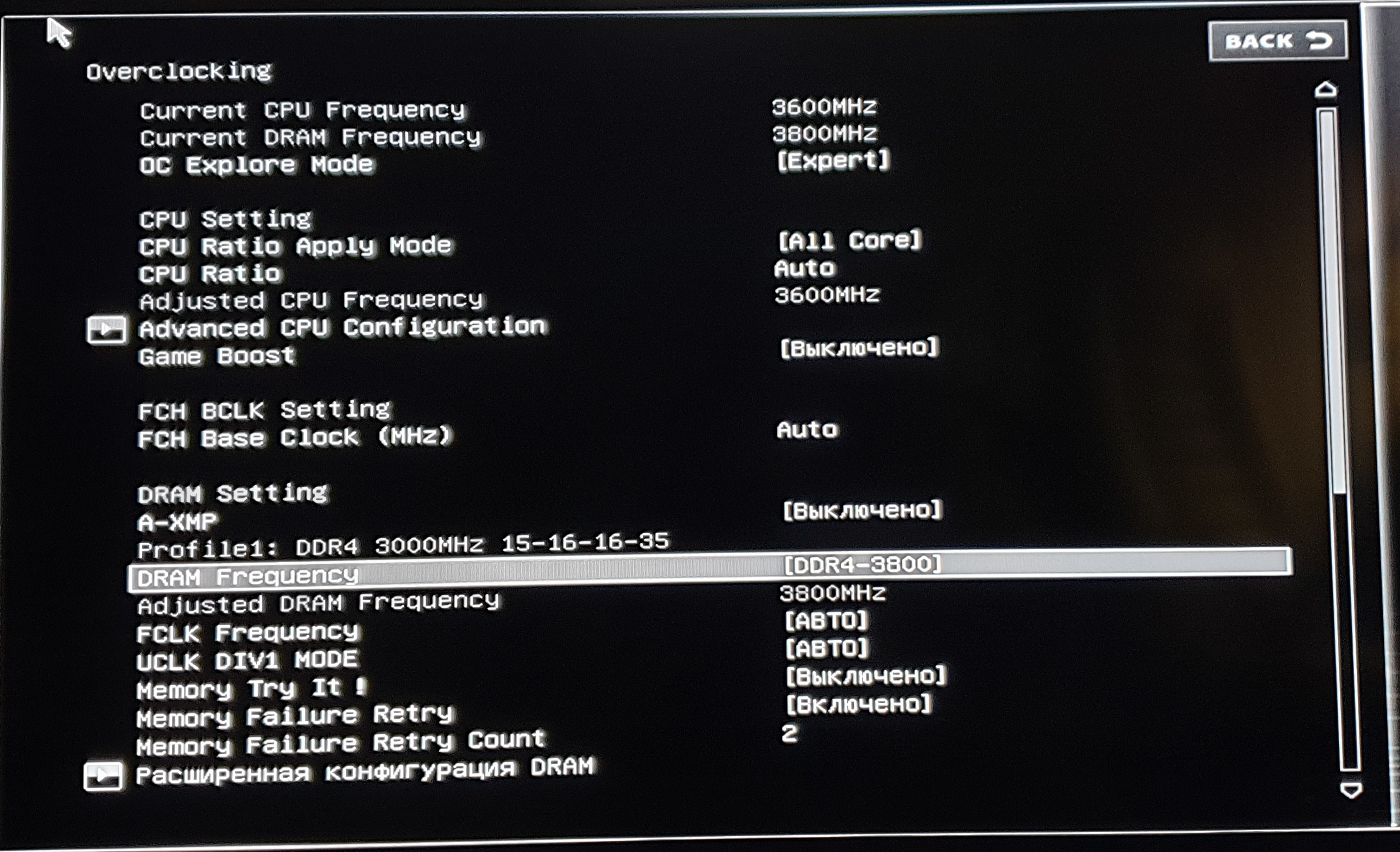 8. Если нет бута на частоте памяти 3800Mhz, то проверяем возможности IF вашего CPU, для этого выставляем частоту памяти на 3200Mhz, а IF например на 1900, пробуем загрузиться...