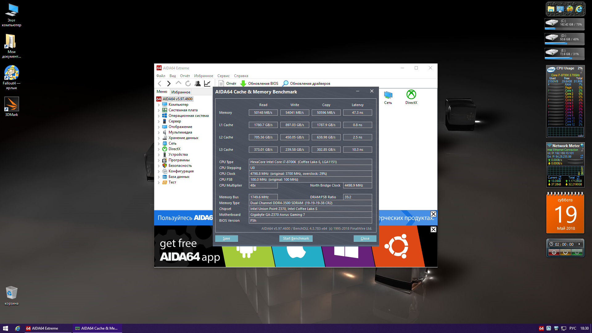 Частота и тайминги Основные показатели скорости памяти. Чем выше частота памяти, тем лучше. Однако гнаться за частотой во вред таймингам не имеет смысла (и наоборот). Выбор частоты на DDR4 возможен от 2133 до 5333 Мгц. Частоты выше 4400 Мгц доступны как правило только на определённых оверклокерских платах и с отборными модулями (а также с хорошим контроллер памяти процессора, который сможет подобное). Хорошей частотой в разгоне является 4000-4400 CL17 и ниже, выше уже могут выше только отборные модули. Для платформы AM4 частота оперативной памяти особенно важна, т.к. к ней привязана внутренняя шина передачи данных Infinity Fabric (работающая на половине частоты оперативной памяти). Дело в том, что эти многоядерные процессоры состоят из двух модулей по несколько ядер, которые взаимодействуют между собой через шину под названием Infinity Fabric – а она тем эффективнее, чем быстрее у вас ОЗУ. Частота влияет в первую очередь, но это не единственный фактор. В связи с этим очень желательны модули, которые в разгоне могут достичь хотя бы частоты 3200, при этом частота Infinity Fabric будет уже вполне удовлетворять потребности процессора. Частоты выше также растят производительность, но требуют бОльшие вольтажи, лучших материнских плат и отбора памяти. Прирост от 3200CL14 -> 3466CL14 есть, но как правило настолько затратный по времени, что не покрывает затрат на его достижение. Хотя сейчас, ситуация лучше и уже многие Hynix\Micron могут взять 3200\3333 на AM4, B-die уверенно работает на 3600-3800. Одинаковая память на более низких таймингах (при одной частоте) будет эффективнее. Т.е. 3200 CL14 > 3200 CL16, как пример. При правильной настройке вторичных и третичных таймингов, можно «добрать» еще до 45% производительности в синтетике и до 25% в играх. Таблицу задержек в наносекундах можно посмотреть тут.