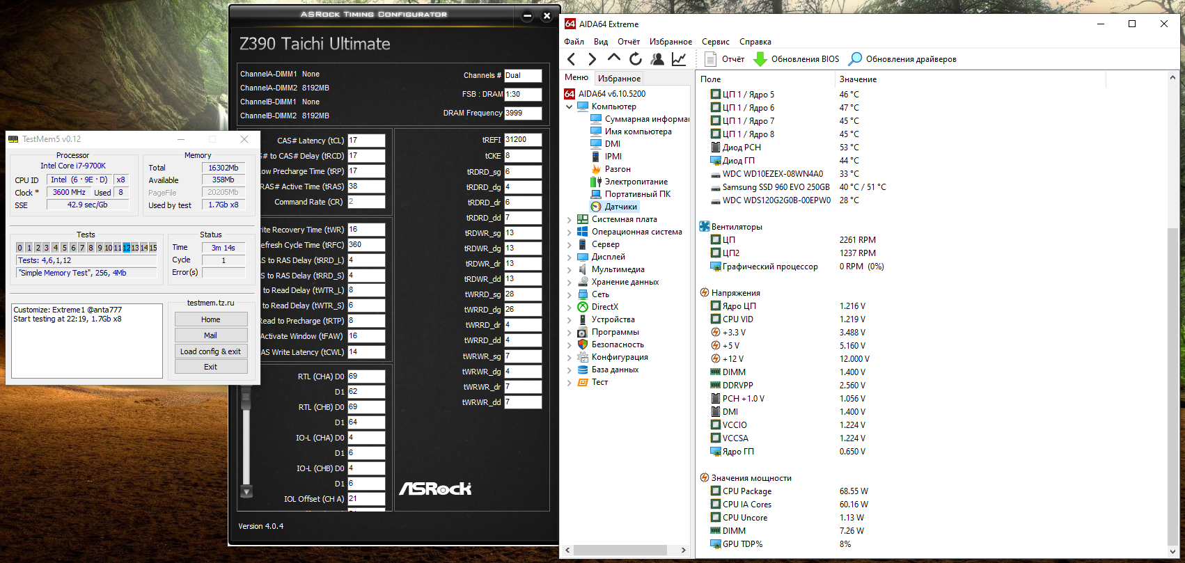 собственно память может в такое сочетание частоты и tRCD #77 отстройку я пока не делал ищу пределы к сожалению, пока на руках опять только i5 6400 и я упираюсь в его кп - старта на 4000мгц+ не добиться пост код Ab но уже в текущем виде разница с обычным микроном из китов sport lt заметна и это радует радиаторы малёк странные на вид, однако датчик температурный есть и нагрев умеренный я так вижу, что на 1.45в на 3733мгц я спокойно удержу 45 градусов кит интересен тем, что в этих ваших западных интернетах он катается вплоть до 4600мгц ни мне, ни Саше это скорее всего не светит - упрётся в матплату (asus m8h) но всё равно интересно