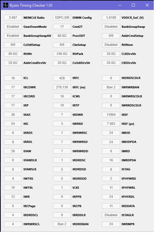 sergunmangos задержку подфиксите, как заметили выше, Power Down Mode = disable. Разве что проверить tWR = 10 и отдельно tRDRDSCL/tWRWRSCL = 3 можно, но нужно будет накинуть вольтажа на память с запасом до 1.4v примерно и после удачной проверки на стабильность понижать. Если планки осилят, то вообще замечательно.