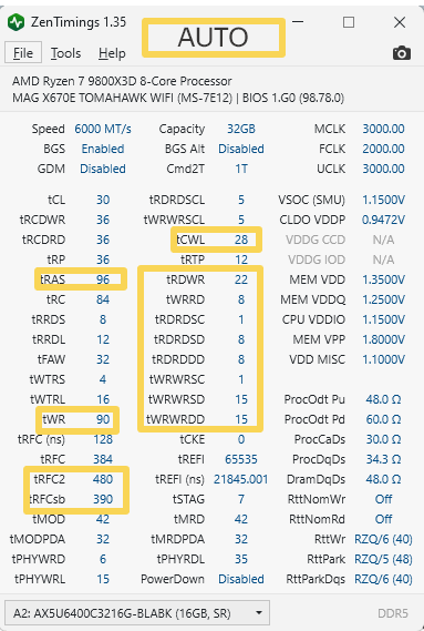 фпс с ужатыми таймингами скакал от 130 до 150 (всё в ультра, FULLHD, Dlss Q, RT ultra) поставил в AUTO, фпс стал от 138 до 160, график фреймтайма стал ровный без дрыгания (всё в ультра, FULLHD, Dlss Q, RT ultra). Можно проверить просто выехав на главную трассу, которая ведёт в другие области карты и гонять по ней. Там нагрузка варьируется от загруженности растениями, тенями и транспортом. Проверил раз 10, загружая разные профили таймингов.