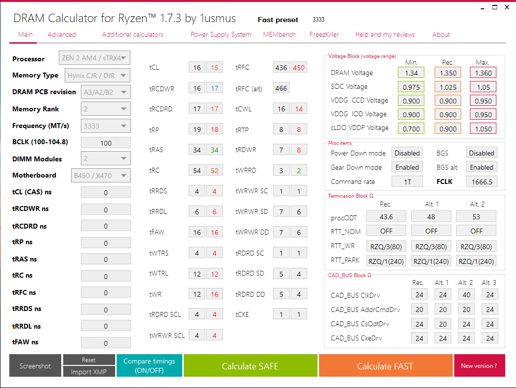 Добавлено спустя 7 минут 41 секунду: dftm1 Ну смотри, есть тайминги масштабируемые напряжением, есть не масштабируемые. tCL на всех чипах памяти масштабируется напряжением. В какой зависимости - зависит от чипа. Есть мнение, что tRFC тоже масштабируется напряжением, поэтому он примерно у 80% ниже калькуляторного. Калькулятор по сути не рассчитывает тебе никакие тайминги, а в зависимости от системы показывает усредненный пресет настроек таймингов и напряжений. Важно заметить, что они у каждого свои (один тайминг выше, другой ниже). Самое основное, что все должно стабильно. Если кроется какое то сомнение, то тогда получше тестить. как тестить? Здесь на форуме Хулигано в принципе описал методику тестирования для различных задач (примерно недели 3 - месяц назад), если поковыряться то можно найти.