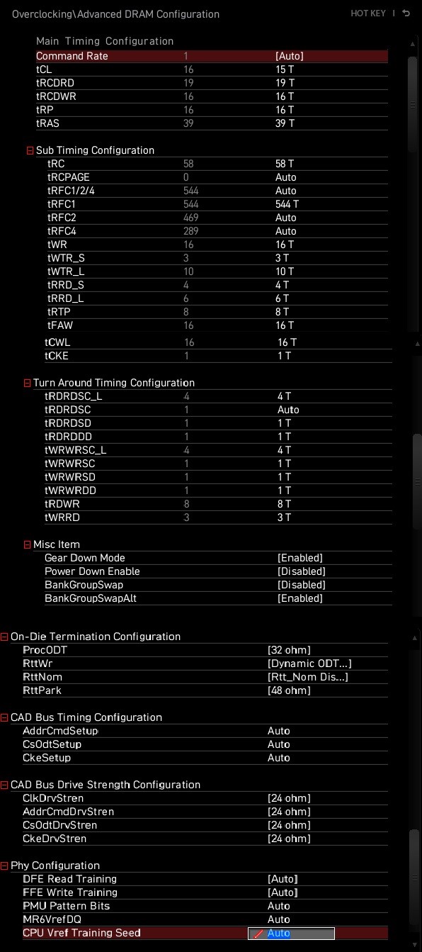 в общем по ряду причин не связанных с самой памятью пришлось юзать частоту в 3333 поджал тайминги. гляньте свежим взглядом - все ок ? какие-то может еще попробовать довануть\что-то изменить ? может что-то криво ? (Goodram Iridium Pro [IRP-3600D4V64L17/16G] X2 )