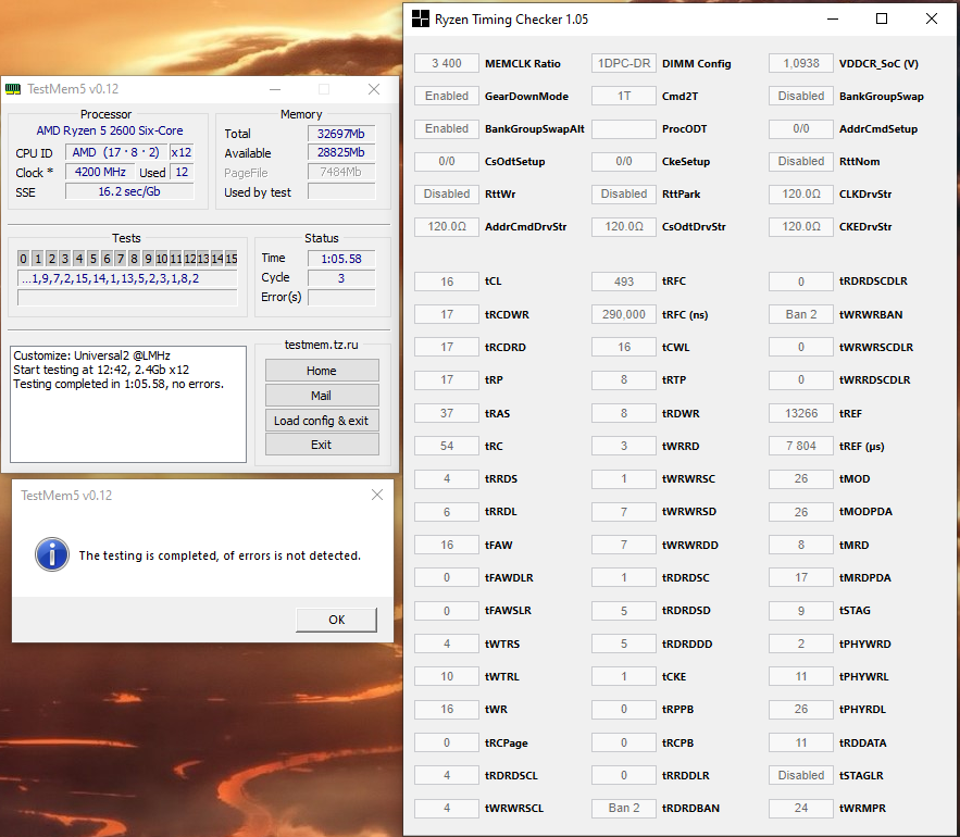 ну у тебя тайминги неверные а тм5 проверяет не тайминги, а регистры миллион раз писалось как тайминги корректировать RCD 17 у микрон j-die на 3400 невозможен как невозможен tRFC 493, RAS 37 и так далее