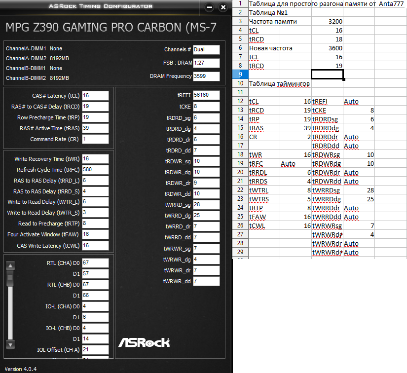 По этим формулам, да, выставились правильно WTRL/S. (Возможно таблица посчитала, как WRRDsg=4+CWL+WTRL? судя по скрину) И подсчет CWL, как я понял изменился в сторону увеличения для стабильности? Но все равно разброс, правильная же настройка таймингов сейчас?