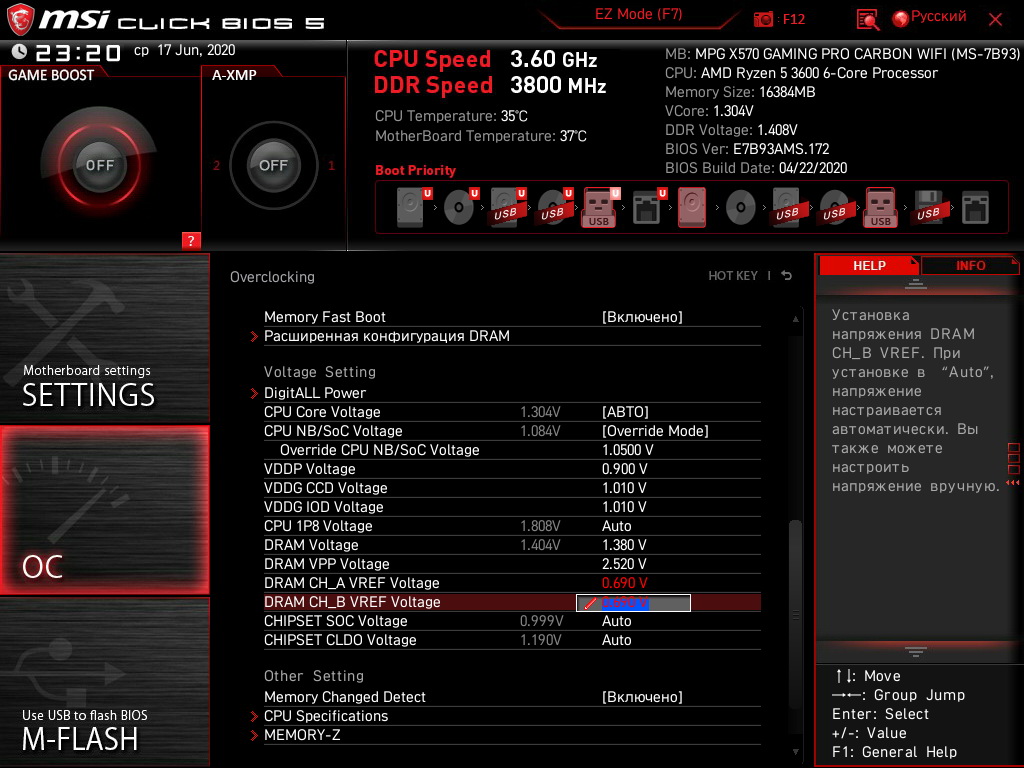 CPU NB/SoC 1.1 VDDP 1.0 VDDG CCD 0.950 VDDG IOD 0.950 DRAM 1.42 DRAM VPP Auto DRAM CH_A VREF Auto DRAM CH_B VREFF Auto Это сейчас. До этого менял как ты писал. Ноль эффекта