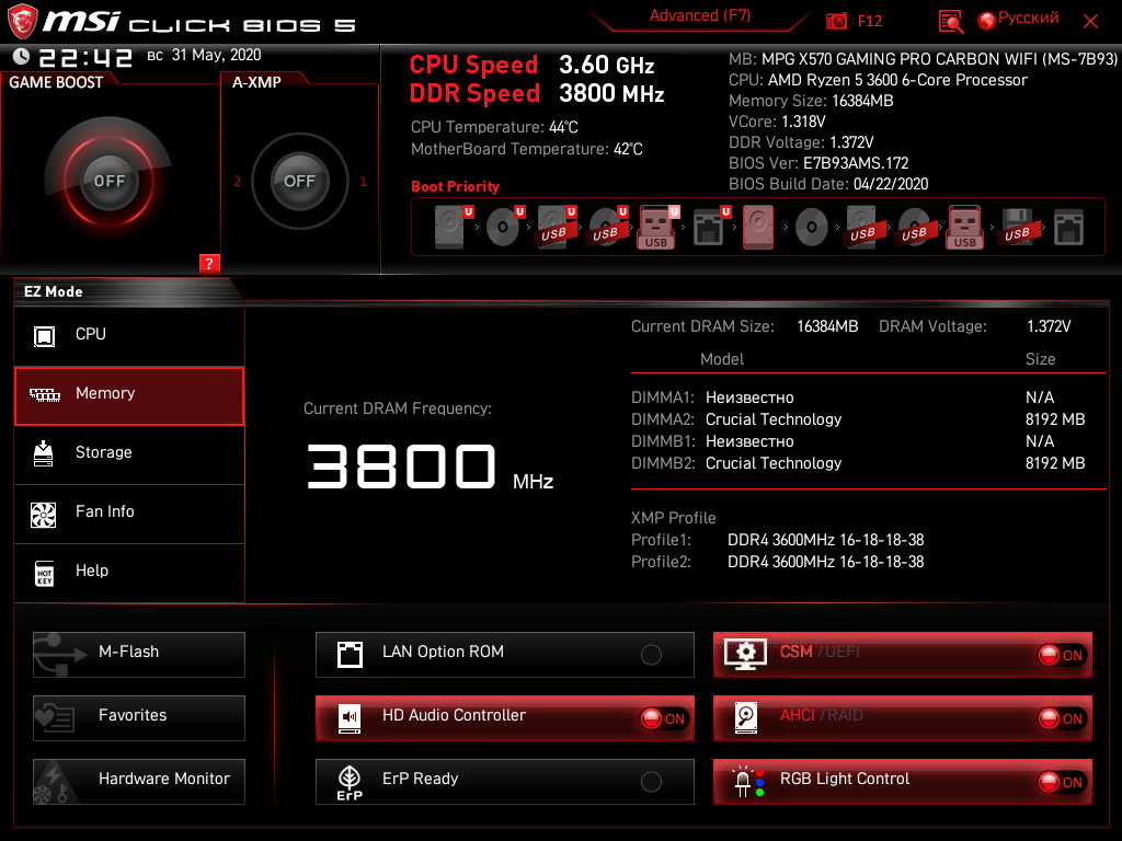 2. Не используем XMP профили, это как правило, настройки для систем на базе Intel, за очень редким исключением, соответственно режим XMP протестирован на совместимость именно для Intel, к тому же, заводская настройка не блещет идеальным подбором таймингов и напряжений и можно получить примерно до 20-30% производительности дополнительно, вручную настраивая тайминги и напряжения. Также использование профиля XMP, чревато завышенным вольтажом на контроллер памяти.