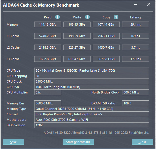 Настроил комплект оперативки G.Skill TridentZ5 6400 на 7200 34-41-41-90. Конкретные значения таймингов и результаты теста в Aida64 на скриншотах из вложения. Мне кажется высокова-та латентность. Видел цифры 55ns у других людей. Может можно ещё что поднастроить?