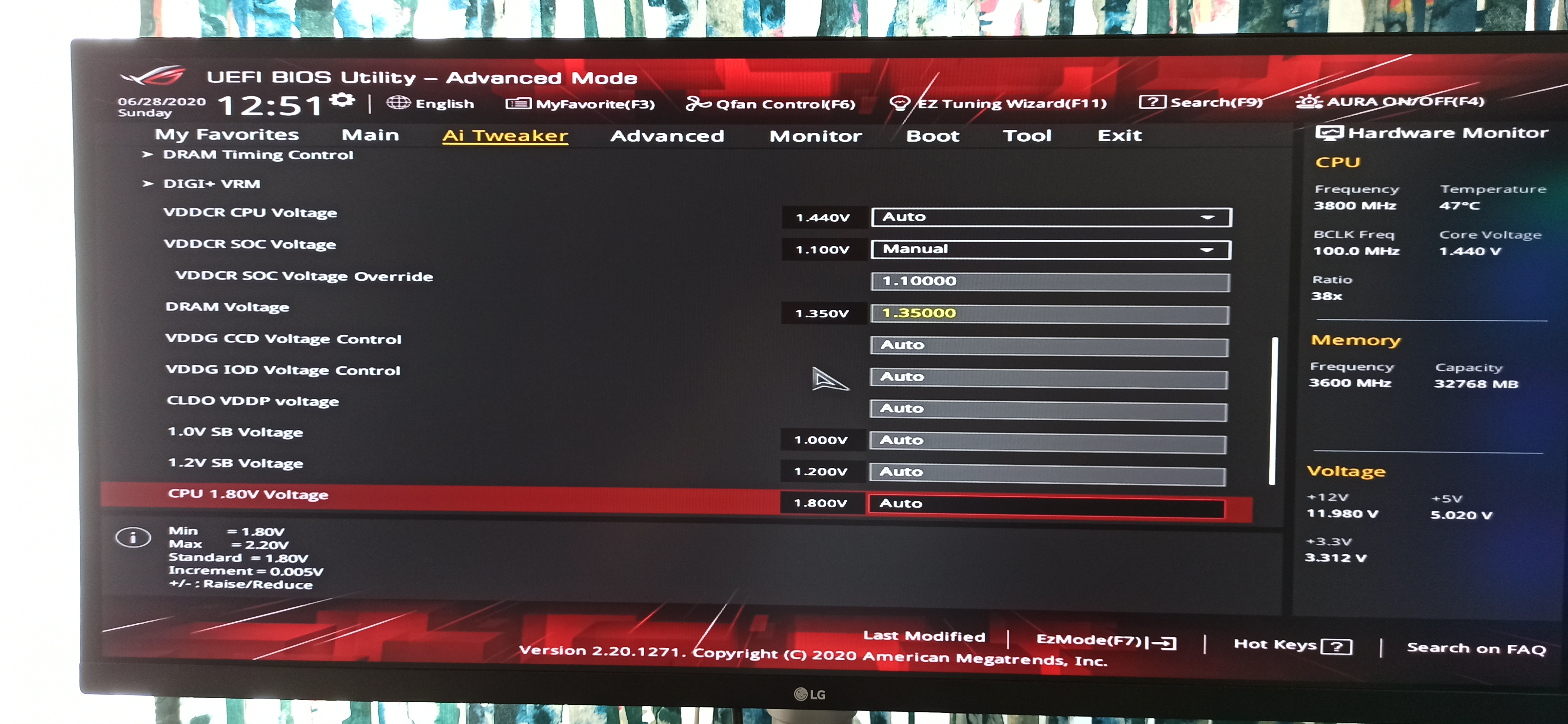 Я попробовал. Ничего не получилось, проблема осталась таже. Подробно, что я делал: 1) Я сбросил биос сняв батарейку на 5 минут (был вариант прожать CLRTC на материнке где 2pin, но мне этот вариант не нравится) 2) Процессор не разгоняю. В БИОСЕ в разделе VDDCR SOC Voltage устанавливаю режим Offset mode (больше ничего не трогаю. (Фото 1) Нажимаю F10 (сохраняю). Опять захожу в БИОС, ставлю D.O.C.P, появляется таже самая проблема что и раньше (Фото 2) , после перезагружаю, запускается с первого раза виндус, далее делаю перезагрузку, и опять появляется проблема с UEFI. Захожу в биос, возвращаю как было, перезагружаю. Черный экран и на материнке светодиод VGA (Прикрепил видео ) 3) Сбрасываю биос сняв батарейку на 5 минут. В БИОСЕ в разделе VDDCR SOC Voltage устанавливаю режим Manual. Ниже строка VDDCR SOC Voltage Override , сначала ставлю 1.05 (фото 4) , сохраняю, перезагружается, захожу в БИОС, ставлю режим D.O.C.P ситуация аналогична пункту №2. Опять сбрасываю биос, но в этот раз поставил 1.1 (фото 5). Ситуация не поменялась.