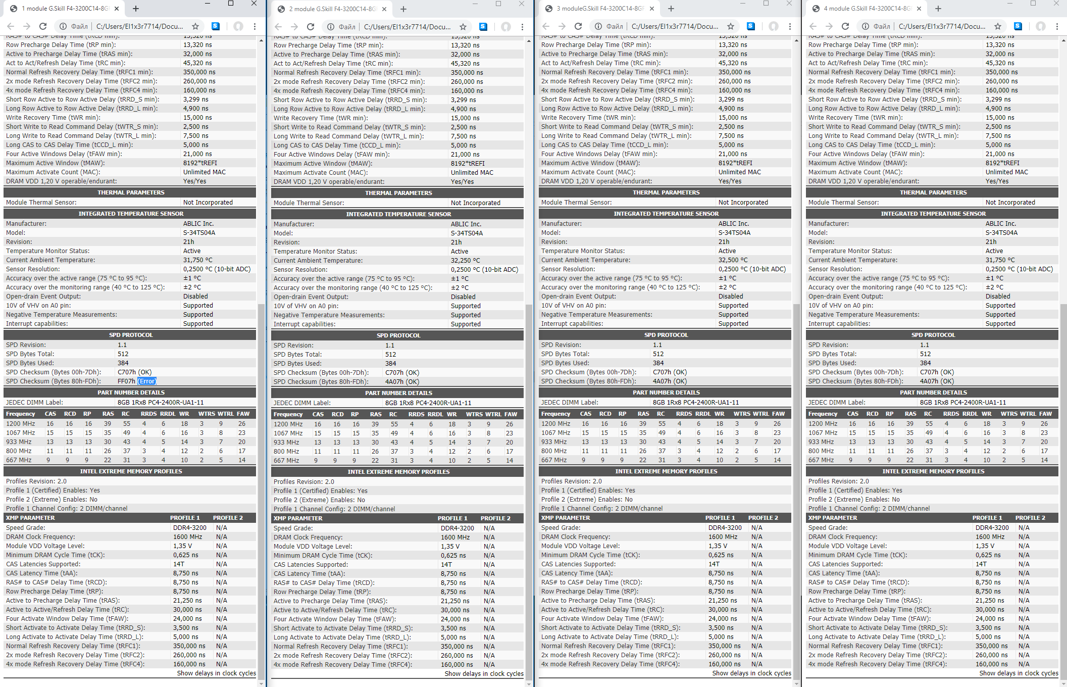 Подскажите, пожалуйста, что "это" такое SPD Checksum (Bytes 80h-FDh): FF07h (Error) и почему именно на 1 плашки проблемы с этим "параметром"? За что он отвечает и чем чревато? Это просто битый СПД? Это на работоспособность плашки не повлияет?