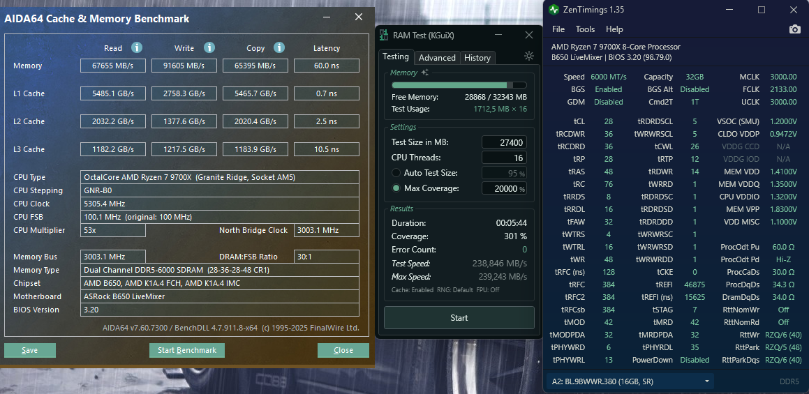 Перебрал несколько "свежих" успешных кейсов. Спасибо товарищу egomine, его вариант при частоте 6000 прошел тесты ТМ5 (на профилях 1usmus_v3 и anta777 heavy), сейчас гоняю y-cruncher v0.8.6.9545 (stress -M:3.5G -D:300 -TL:3600 FFT VT3).