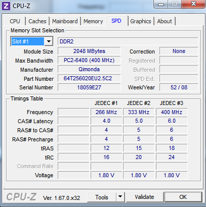 DualCore Intel Core 2 Duo E8400, 3000 MHz (9 x 333)). У меня уже стояло две планки памяти Qimonda 64T256020EU2.5C2 - 2 gb DDR2-800 DDR2 SDRAM (6-6-6-18 @ 400 мгц) (5-5-5-15 @ 333 мгц) (4-4-4-12 @ 266 мгц)/ Там есть режим работы памяти на 333 мгц с таймингами: 5-5-5-15.
