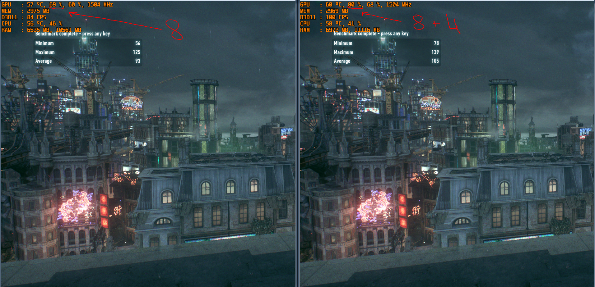 было 69% \ 84 FPS стало 80% \ 100 FPS