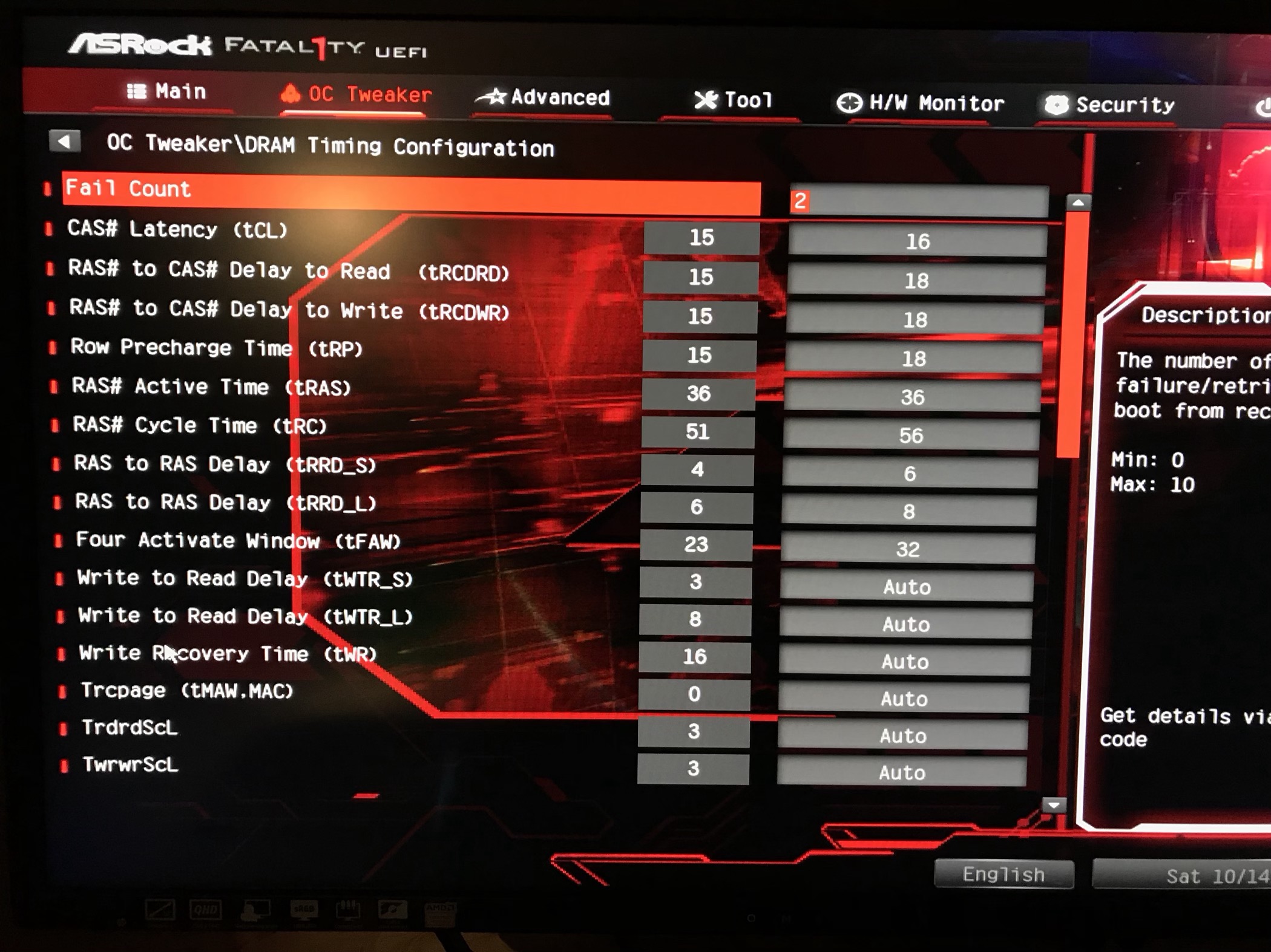 maxqka Откуда вы взяли значение tRFC и tRC? Попробуйте для начала оставить авто во всех таймингах кроме первичных (16-18-18-18-36 только), и комманд рейт 2Т для начала.