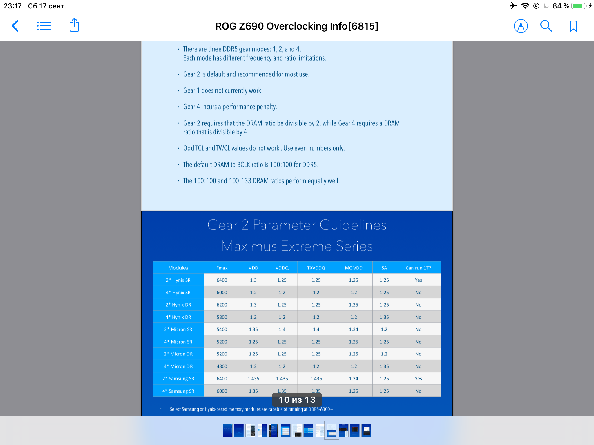 1. Примерно понять лимиты своего железа (одно только это даст огромную подсказку с чего начинать) 1.1. DDR XMP вольтаж / частота / таймиги - чудес не бывает, так что каждые +100Mhz будут требовать примерно ~ +0.015v относительно XMP, CL каждые -2 шага ~ тоже около 0.015v. Другие тайминги - как настроить - но могут и много попросить. 1.2. Проц - По частоте до 7600 - врятли будет ограничивающим фактором если это K-проц 13 поколения. 1.3. Мать - z790 на 4 плашки - до 7600, на 2 плашки - 8000+. z690 - любая мать кроме топовых КигПин ~7000Mhz +/-