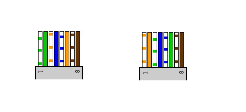 Схема неправильная для гигабита, коричневую и синюю пару тоже надо менять местами.