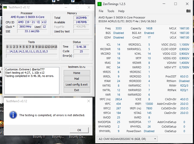 UPD 5: Прогнал второй тест на 30 циклов (7 часов) ииии... Словил две единичные ошибки в тестах 2 и 9. то есть, ошибок стало только больше Будем разбираться Попробую для начала сохранить тайминги, но вернуть частоту к стандартному XMP и вольтажу (3200/1,35V) (ну как сохранить, тут я могу сделать 14-17-17)