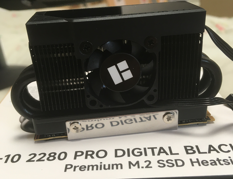 Из купленных двух таких радиаторов (белый и чёрный) выбрал чёрный (белый на запас лежит) и уже установил на свой новенький M.2 NVMe накопитель Samsung 9100 PRO [MZ-VAP2T0BW]. В простое с ним сейчас 27-29 градусов. Экранчик у радиатора прикольный, цветной и яркий, через фирменный софт можно выбрать для любого диска в системе отображение его температуры, процента загрузки, скорость передачи данных. Можно и отключить экран. Активный охлад традиционно включать не стал: спокойствие дороже, да и диск пока что не требует более мощного охлада, будучи в простое на неопределённое время.