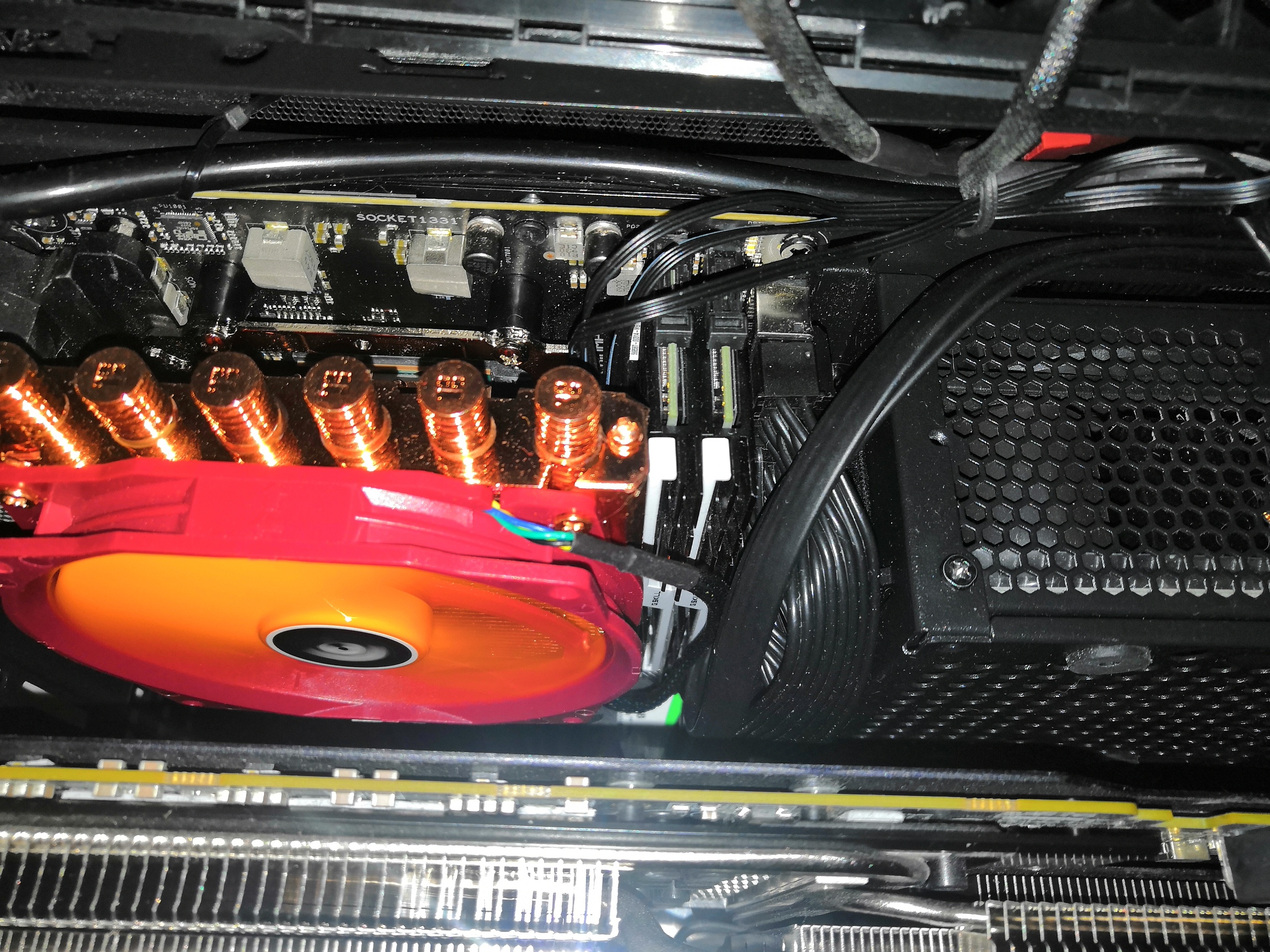 Добрый день, нужен совет. Решил приклеить на бэкплейт видеокарты 150*60*18mm радиаторы. Купил 2 штуки, влезают оба поперёк https://amperkot.ru/msk/catalog/radiator_ohlazhdayuschiy_1506018mm-39166349.html Проблема в том, что профильный Cryorig R1 слишком широкий, радиаторы с ним не поставить. Подскажите воздушку, которая встанет по ширине, и при этом чтоб хватило производительности для скальпированного 9900kf на 1.35в. Линкс гонять не буду, только игры и браузер, кое-как досидеть 1 год до альдер лейков.