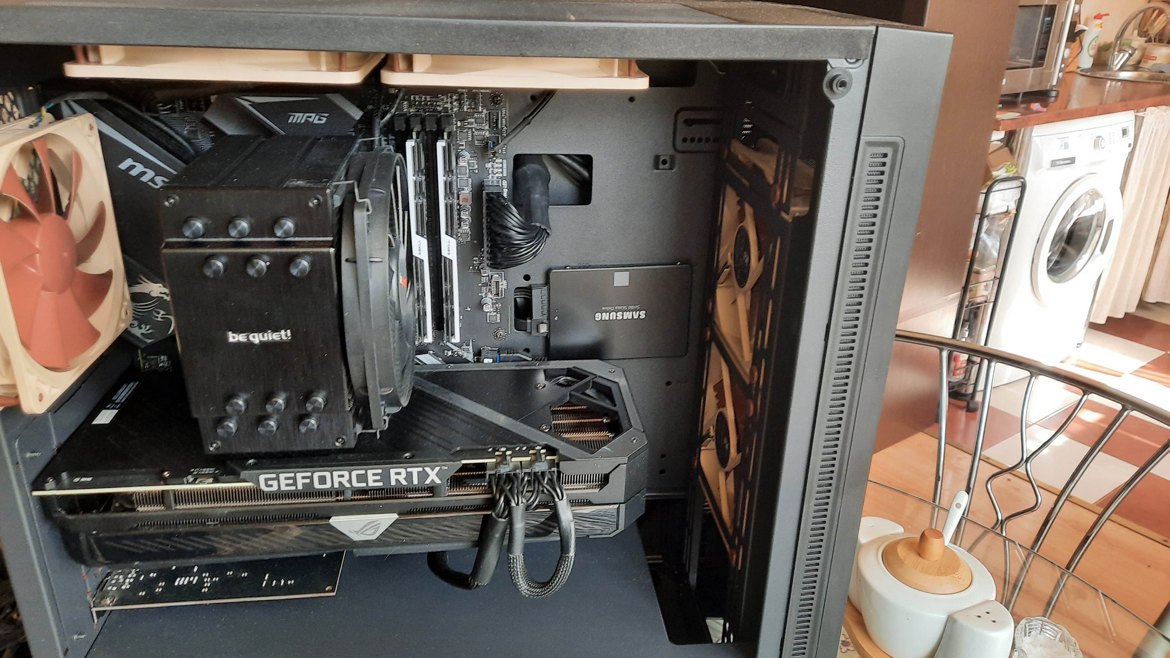 Если не упарываться в стресстесты с AVX/AVX-2, DARK ROCK PRO вполне себе всё вывозит +очень тихий, память 44мм. в первый слот уже не влезет, вот так выглядел у меня: