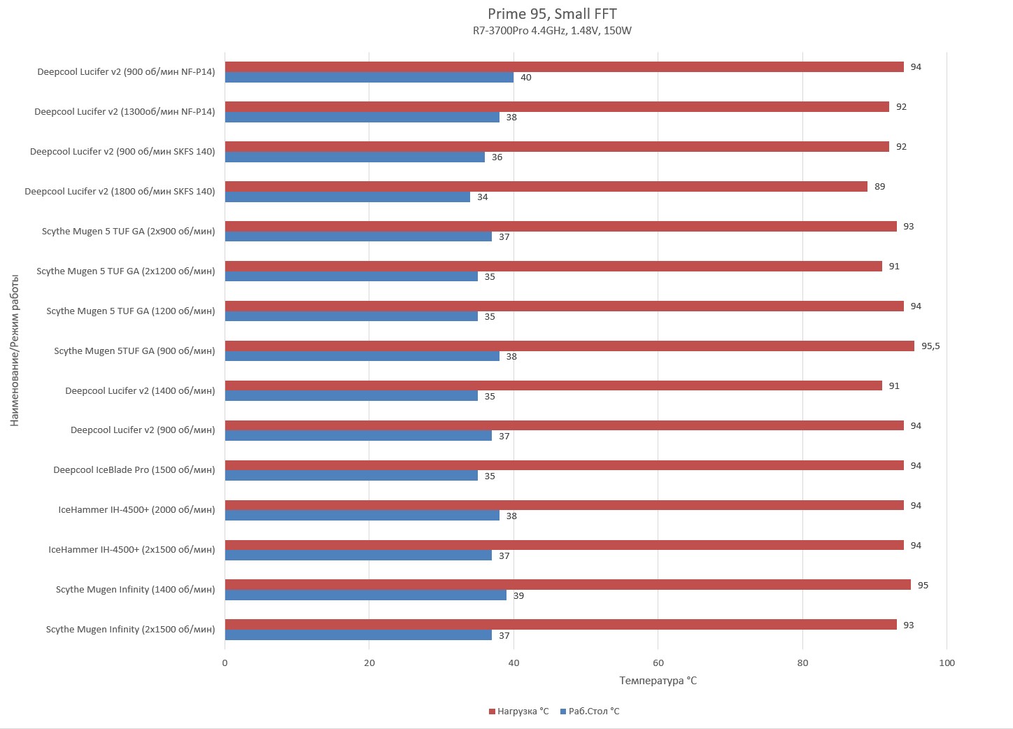 Отличаться очень сильно им нет особых причин, они же очень близкие родственники, да и размеры похожие. Но Fuma2 более продуманный в мелочах, чем Mugen. Второй вентилятор посередине, а не сзади, например. При похожей цене я бы Fuma2 выбрал. Да я и выбрал. Ещё я сразу поменял передний вентилятор на нормальной толщины (SU1225FD12M-RHP), т.к. у меня заняты два слота памяти и перекрытый 1-ый слот меня не волнует. Не думаю, что это сильно повлияло на температуру, но тут немножко, там немножко.... Подумывал ещё третий вентилятор сзади поставить, но у меня корпусной на выхлоп близко к кулеру стоит и особой разницы не будет.