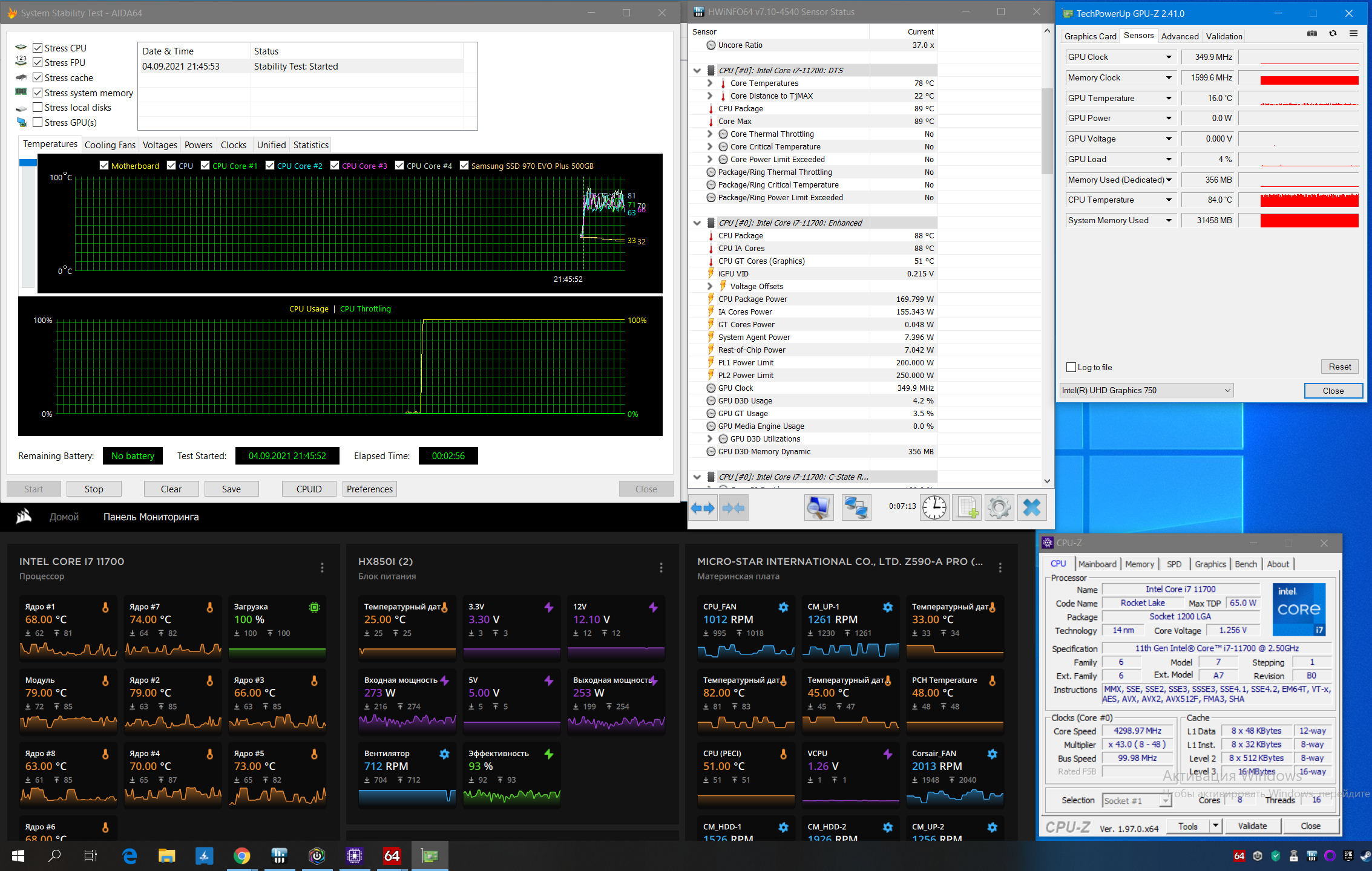 Отпишусь по доработке. Купил Thermalright macho rev.b. Предыдущий владелец его подпиливал. Но неудачно. Купил за 1к. Вентилятор в идеале. Подошву пришлось выравнивать и полировать (6 листов наждачки зернистостью 320, 400, 600, 800, 1000 и 1500). Немного завалил углы, но основной прижим ровный. Итого, что имеем: CPU i7 - 11700, TDP выставил в биосе 300W (с запасом). Мать MSI Z590 A-PRO. 2 плашки по 16гб (из подписи) на 3200МГц (16-19-19-19-40, 2Т). Корпус Zalman Z3 plus. В корпус СО не влезла. Пришлось снять прозрачную накладку с боковой крышки и выпилить новую с наружной фиксацией. Все закрылось. Теперь по температуре. В обычных задачах скорость вентилятора 300-500об. В тестах с использованием AVX 1/2 не выше 72°. В AVX-512 не более 85°. Процессор держит заявленные 4.4ГГц. Мощностной пакет по данным Corsair Link 255W. Первый слот памяти СО не занимает. Кулер 140мм, выступает за пределы радиатора и хорошо охлаждает зону WRM. Если есть вопросы, задавайте.
