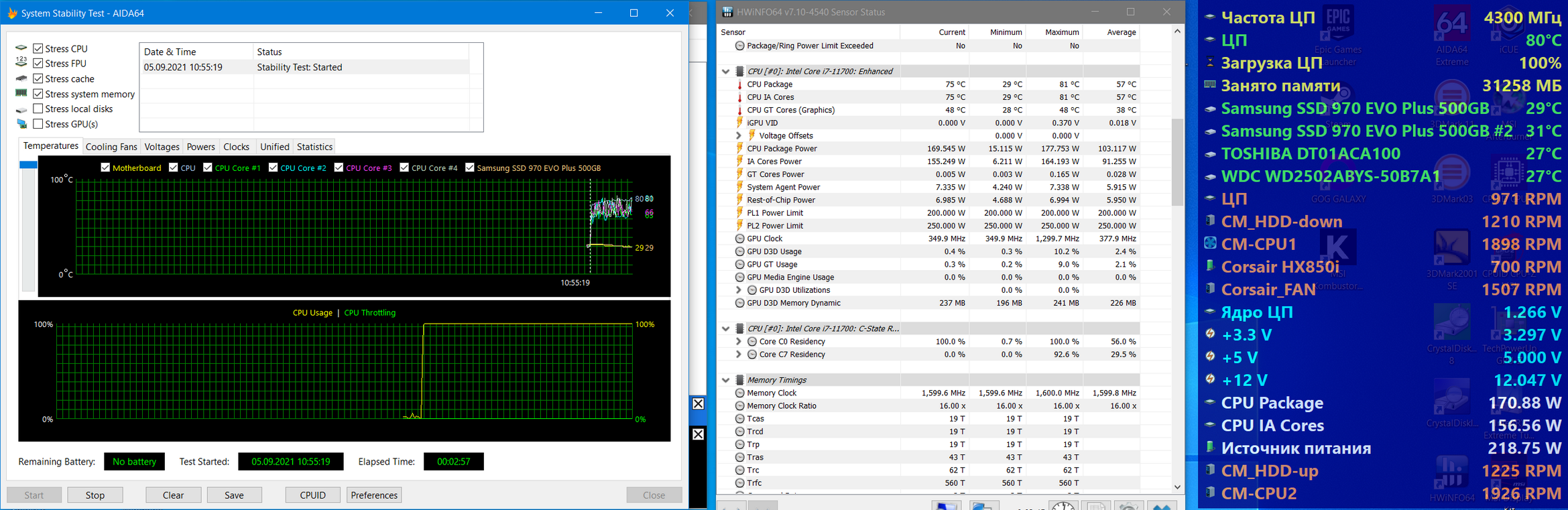 Добавлено спустя 14 минут 11 секунд: Нашел в статистике AIDA64 CPU Package Power - current - 166-170W, maximum - 281W, minimum 12W, температуры 81/86/31 соответственно.
