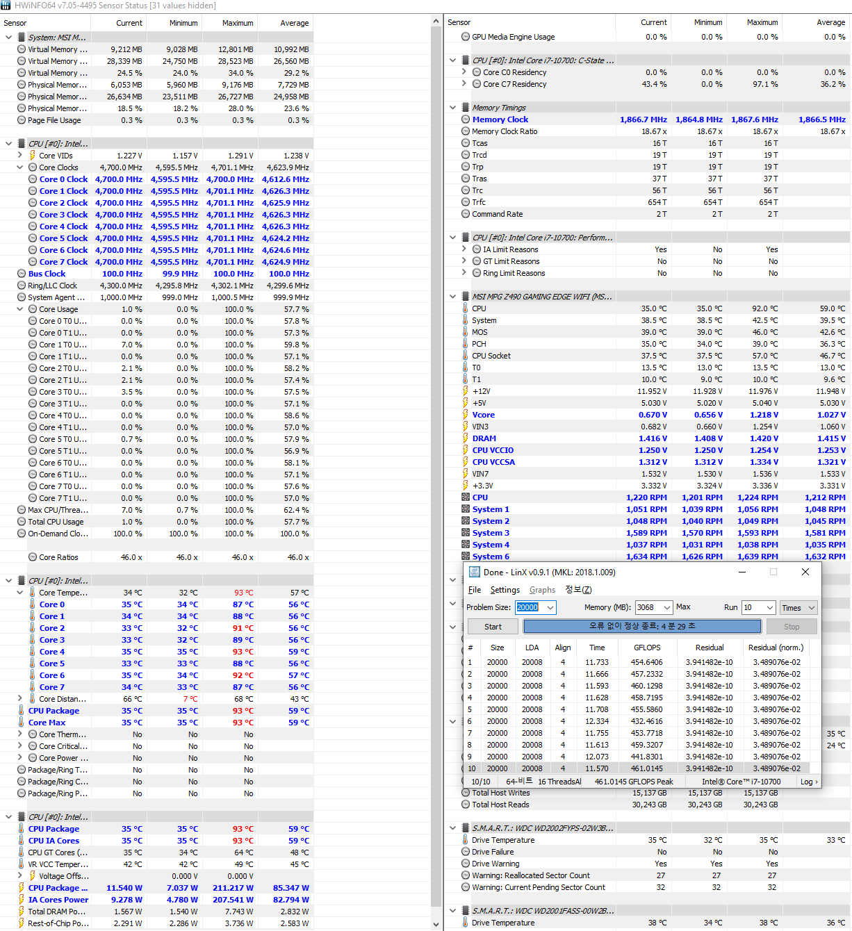 Разобрался. Вот что вышло. Максимальный пакет 203W при 90-89С. Процессор держит только 4200МГц вместо 4400МГц. Троттлинга нет. Но динамическое увеличение частоты выше лимита не работает, ибо температура превысила 70С.