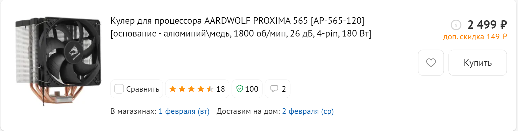 Я тут выше жаловался на слабую эффективность своего redhat. Да, кулер здоровый, но 180Вт с 11400 вывозит уже на грани. По большому счету, эта дура с ценой в 3500р на высокой нагрузке сливает 224-му за 1500р.