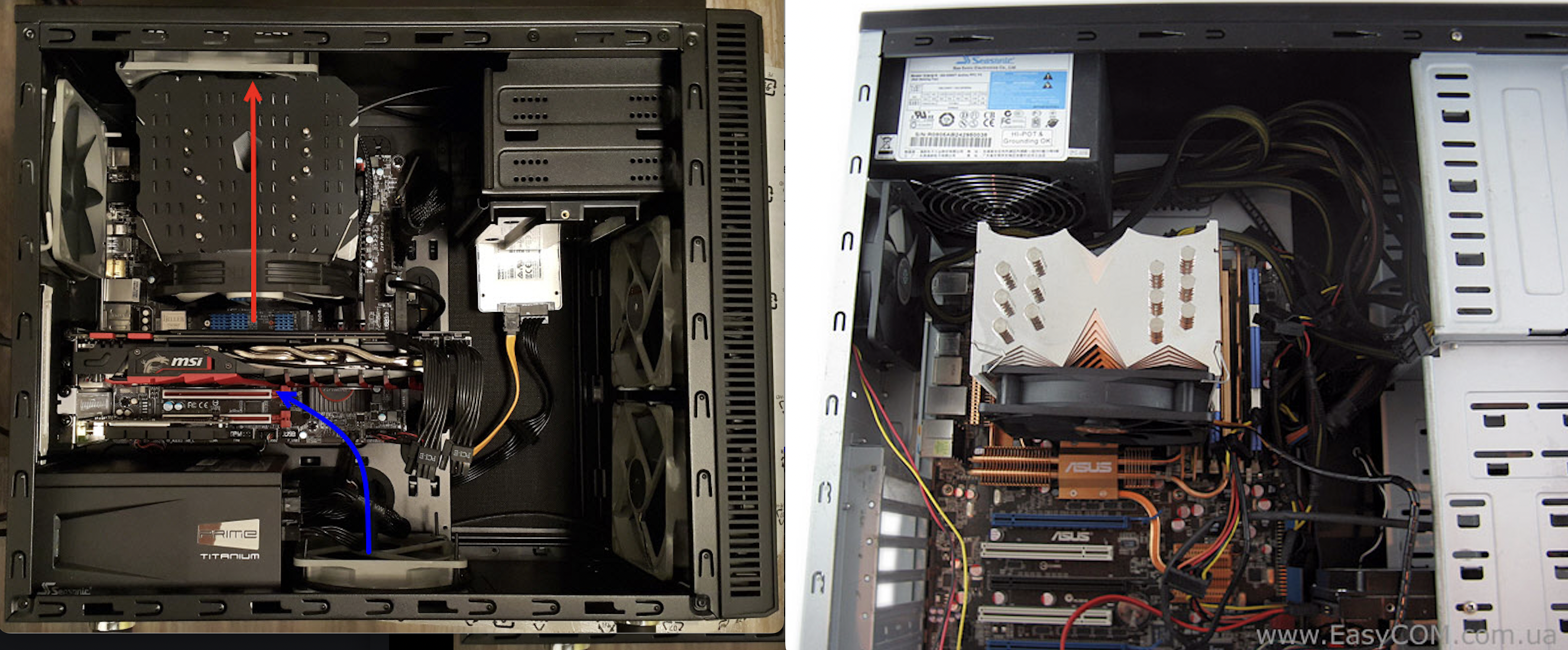 камрады, прошу помощи Ищу кулер для установки вертикально, выдув вверх Готовый вариант. Без допиливаний, существует в природе для сокета АМ4? сейчас стоит Ice Hammer IH-4800 с переходником под AM4 type B - его тепловые трубки не дают повернуть 1) проц Ryzen 5 5600x на материнке на B550 (gigabyte Aorus) socket AM4 2) корпус Cooler Master Master Case SL600M ( высота кулера до 190 мм заявлена) 3) оперативка Patriot DDR4 32Gb (2x16Gb) 3600MHz pc-28800 Viper Steel (PVS432G360C8K) планки в тонких радиаторах, высоту увеличивают но не сильно 4) бюджет до 100$ ( 10-15 тысяч рублей) 5) РФ, СПб - по магазинам предпочтений нет Картинки во вложении для идентификации положения кулера Буду признателен за опыт и мнения