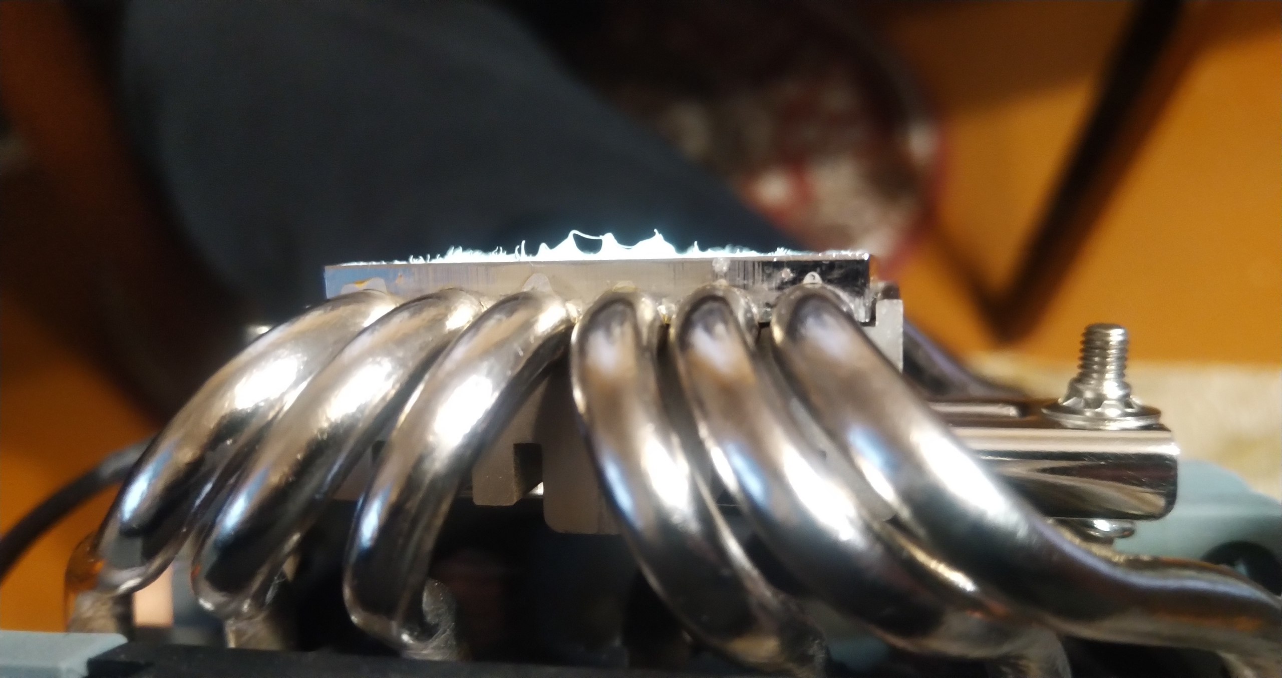 Может и так, ну тут нужен другой проц для проверки. А по моим фото можно что-то сказать? В частности по 1 и 2, это нормально, что с одной стороны между пластинами основания щель почти в полмиллиметра? Не может это ухудшать теплоотвод? Или верхняя пластина не влияет на это и важен только контакт трубок с медной нижней пластиной?