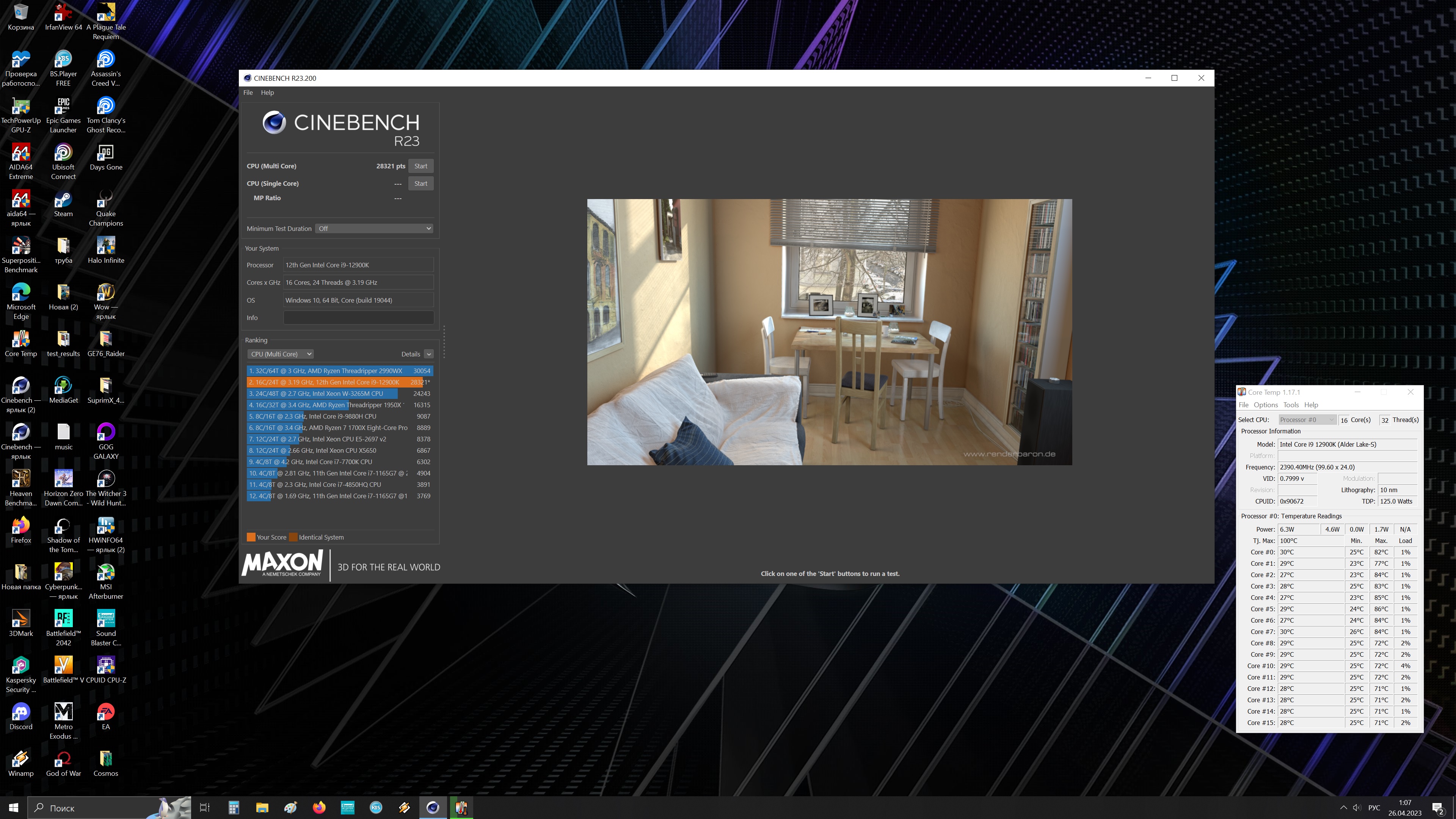 Ну а дальше думайте сами В Синембенче Р23 - 180Вт и температуры 70-80С (надо скачивать с тестового ПК). Но ниже, чем в видео. Такш не беспокойтесь - он потянет ваш 13600К в игорях.