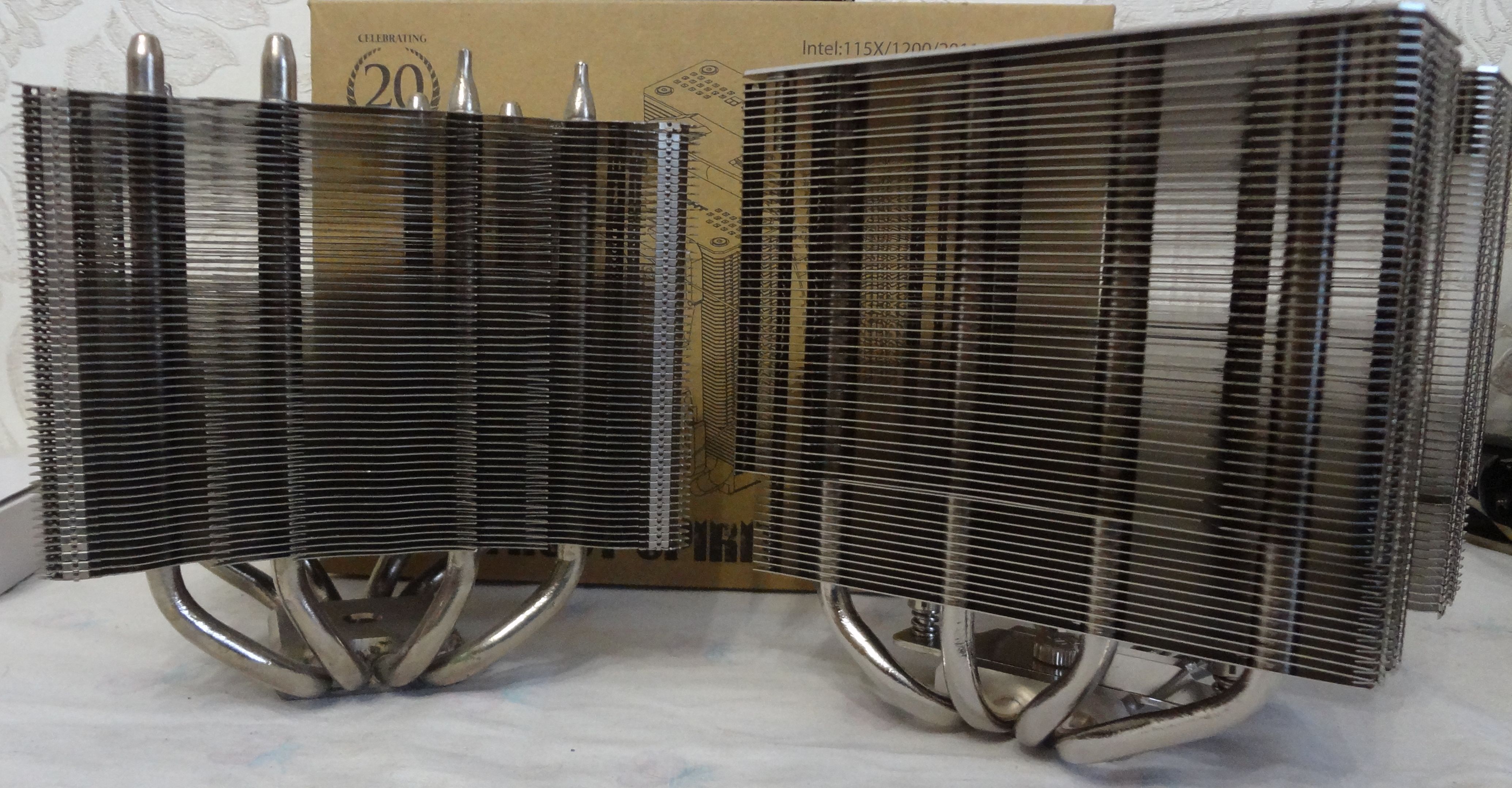 Не такой уж он и смешной раз недавно побил noctua d15. Тут слишком много факторов влияющих на эффективность, в каждом конкретном экземпляре может быть с разным качеством припаяны эти пластины к термотрубкам, разное количество воды может находится в термотрубке, подошвы могут быть разной степени кривизны и влиять на каждый камень по разному. Вон у меня на мугене вообще пластины не пропаяны - естественно он и проиграет 5ку а то и десятку градусов