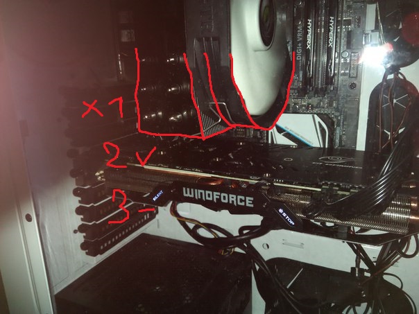 Комментарий к файлу: Вентилятор стоит как на этом старом фото ,а видюха ниже на слот работает нормально она там. 2.jpg [ 84.14 КБ | Просмотров: 1848 ]