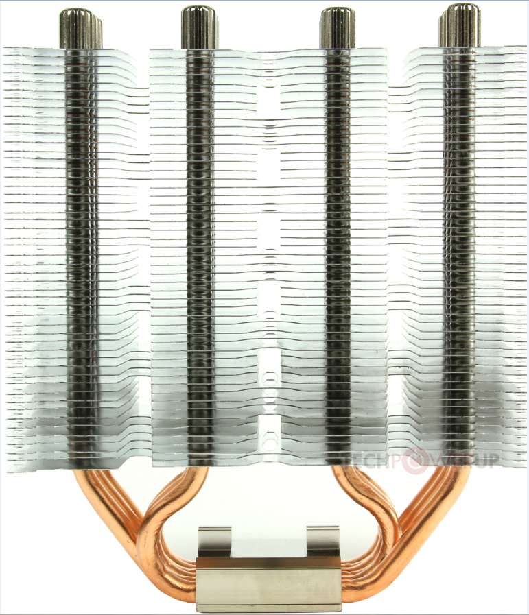Работают данные агрегаты так, через брусок меди (подложка, основание), сквозь который проходят тепловые трубки (трубки из меди, заполненные жидкостью с низкой температурой кипения, главное достоинство которых - высокая теплопроводность) . ТТ (тепловые трубки) переносят тепло от чипа на несколько сантиметров от платы, где удобнее разместить громоздкую часть радиатора - частокол алюминиевых пластин, нанизанных на трубки . Завершает композицию вентилятор, нагнетающий воздушный поток в рёбра радиатора . Это самый распространённый вариант конструкции высокопроизводительного кулера .