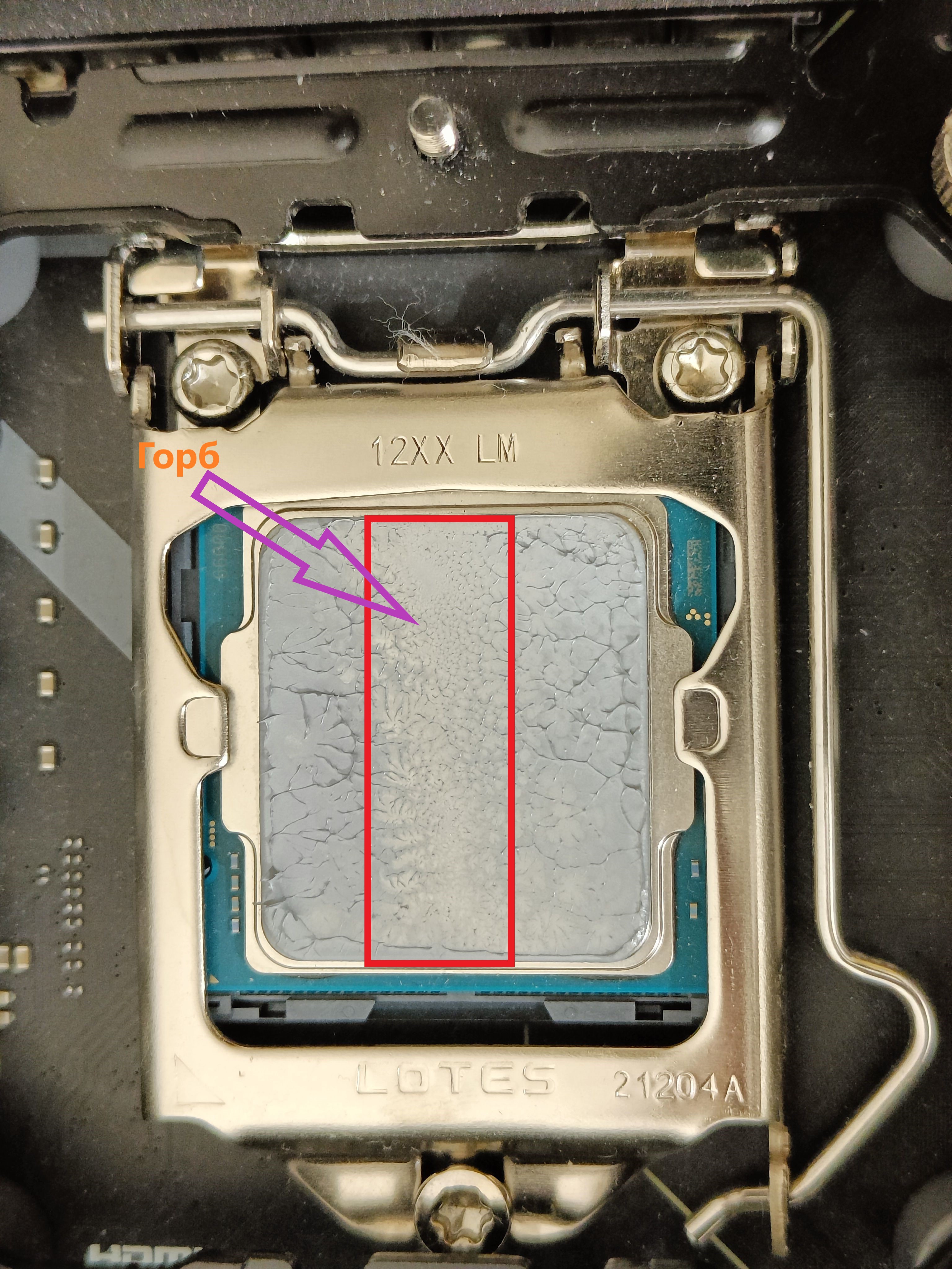 Вот "кривой", т.е. горбатый процессор. А тот, шлифованный - плоский. Главное при шлифовке - не удалить лишнего.