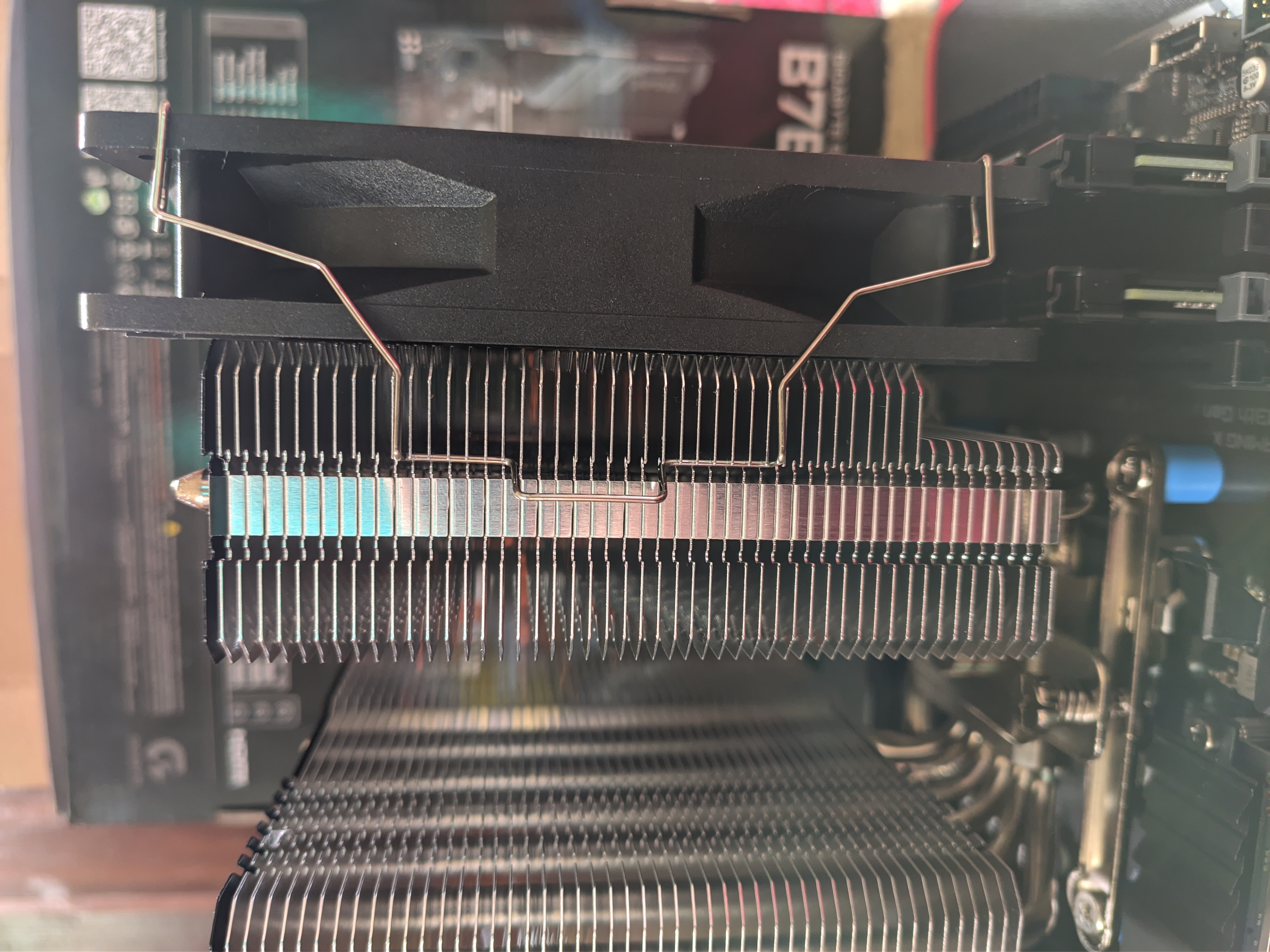 Недавно спрашивал про thermalright pa 120 se и были опасения про высоту оперативной памяти. Сказали что влезет а на деле нифига не влезло. Подскажите допустимо ли такая установка вентилятора (вентилятор выше радиатора около 11 мм). Или сдать его обратно в магазин и что то ставить с одним радиатором? ЦП 12600к без разгона, ОЗУ Kingston fury renegade высота 41.98 мм P.s или ячтотоо делаю не так