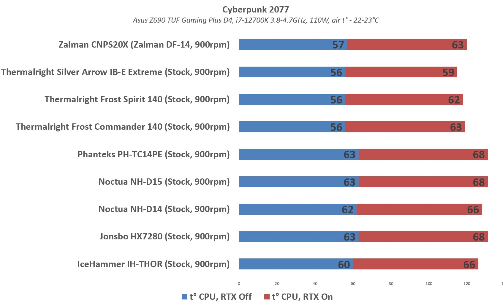 никогда не понимал в статьях этих "тестирований на одинаковых оборотах" у разных кулеров разные обороты. никто не выравнивает под определённое RPM, графики от температуры строятся в процентах от макс., то есть начиная с определённых температур всё равно макс. обороты кулера (если конечно не особо одарённые фанаты тишины, готовые ради тишины спалить проц)