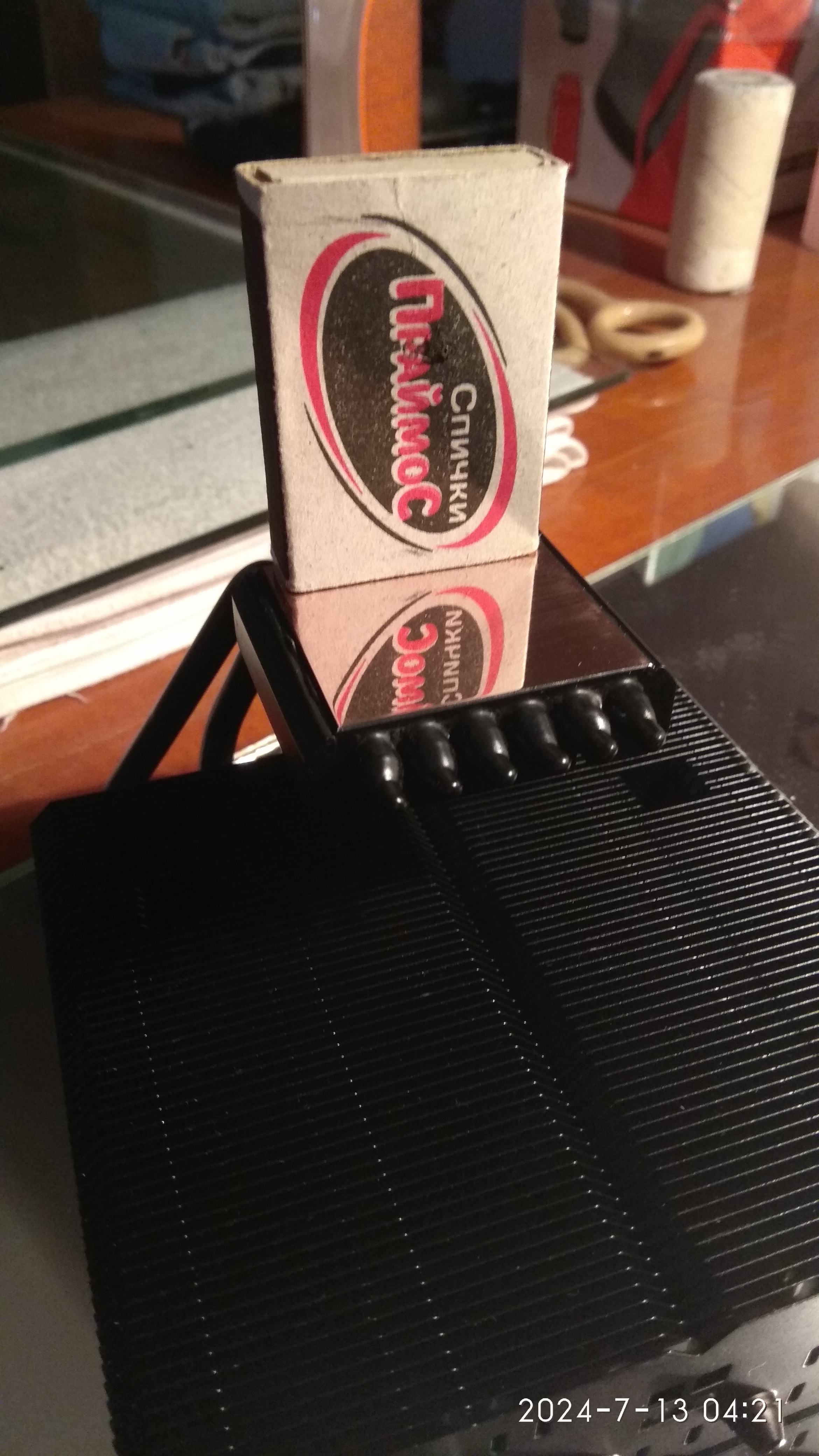Да тут тоже посередине купол, на отпечатке будет +- эллипс, на фотке штангель просто на одну сторону. Паяные трубки сразу чувствуются, SI-100 до 150Вт РРТ нормально справляется с 9700 райзеном в бенчах на открытом стенде https://forums.overclockers.ru/download ... &mode=view В стоке вообще без проблем.